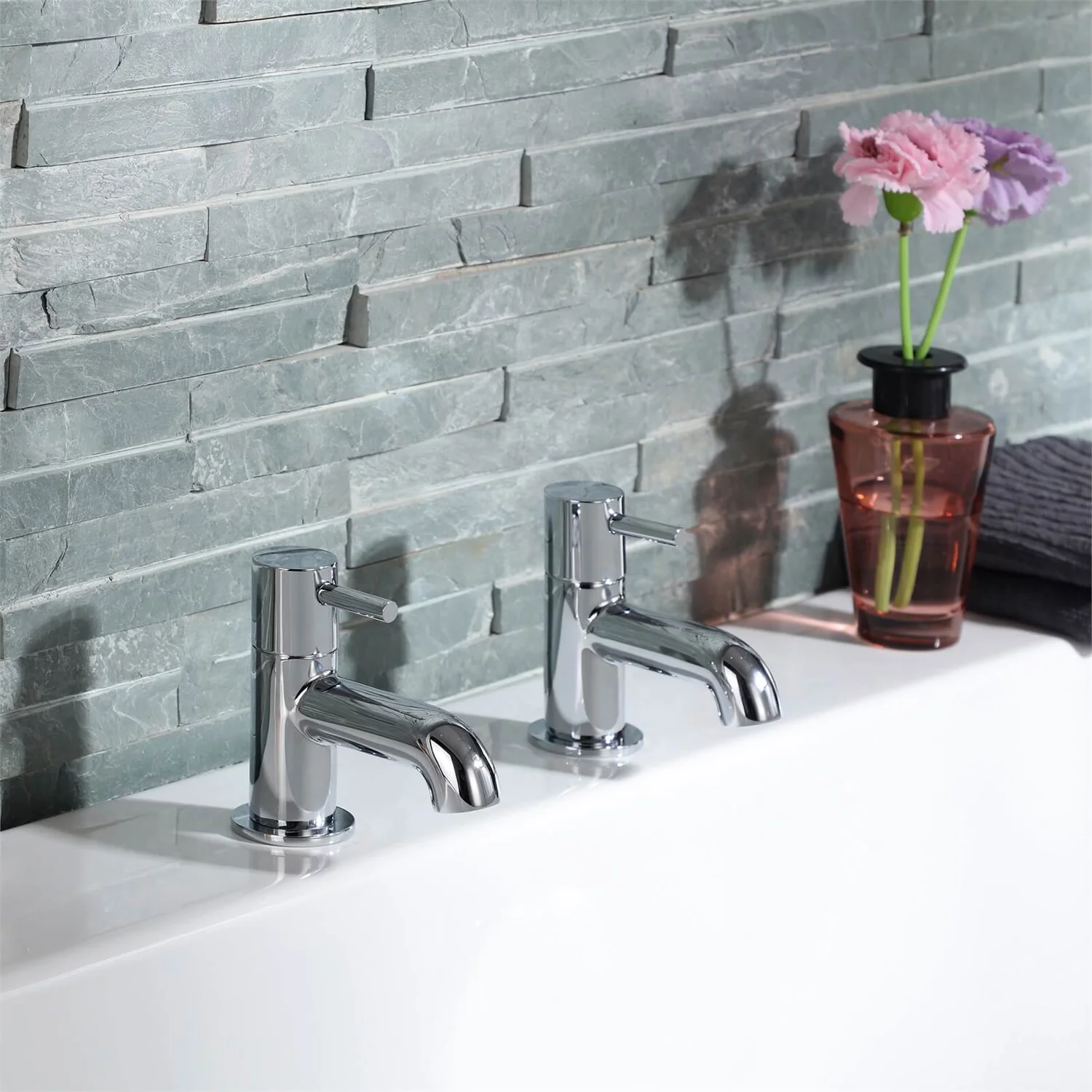 The Aber basin pillar taps finished in chrome with slim handle for ease of use, creates a fresh and trendy feel.