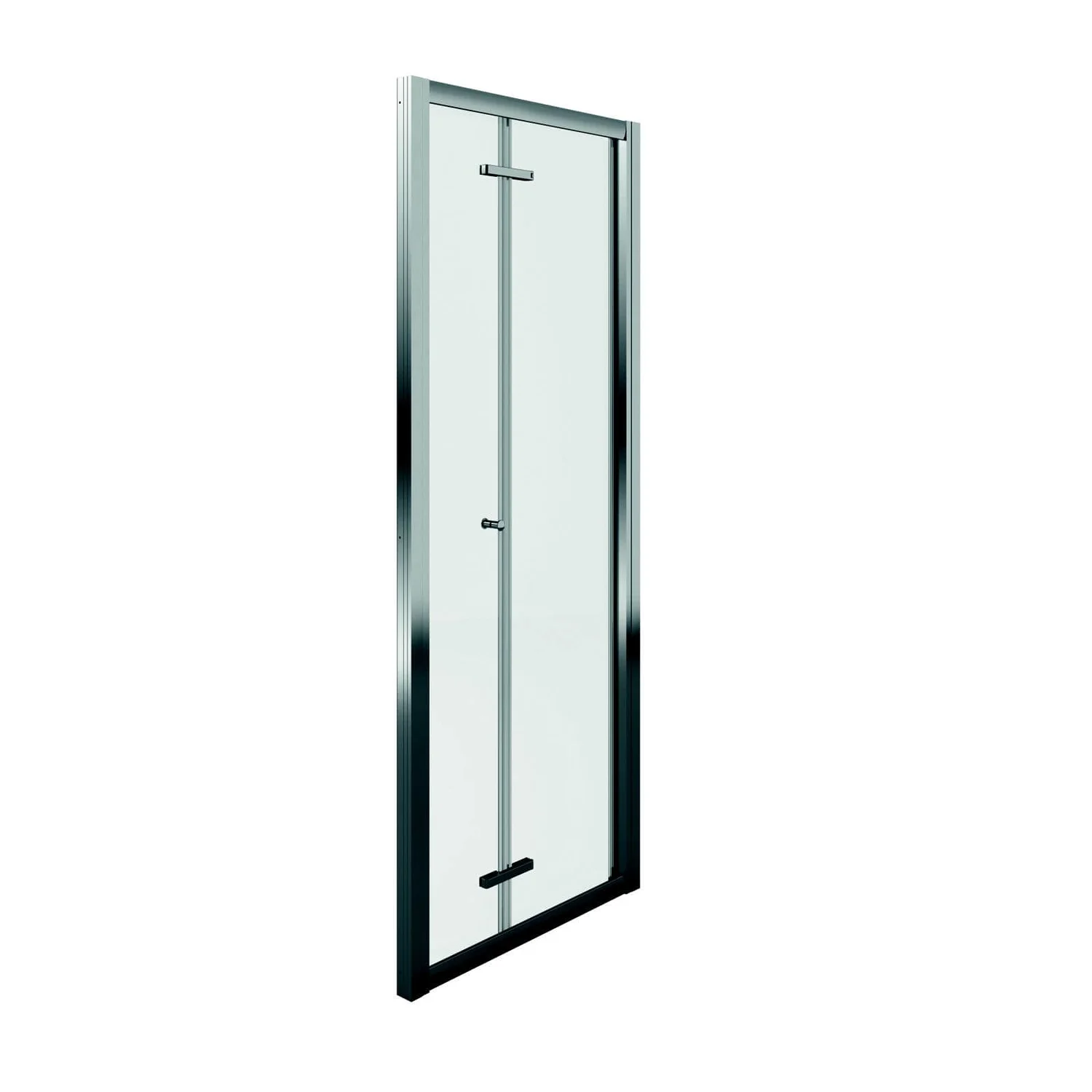 Semi-frameless, polished silver-effect, aluminium enclosure. Provides a sleek finish whilst maximising space with bi-fold door. Aqualux’s 1900 x 800mm bi-fold shower door is ideal for space saving option for small bathrooms. . It features 6mm thick safety glass and a semi frame-less design making it a perfect fit for any bathroom style.