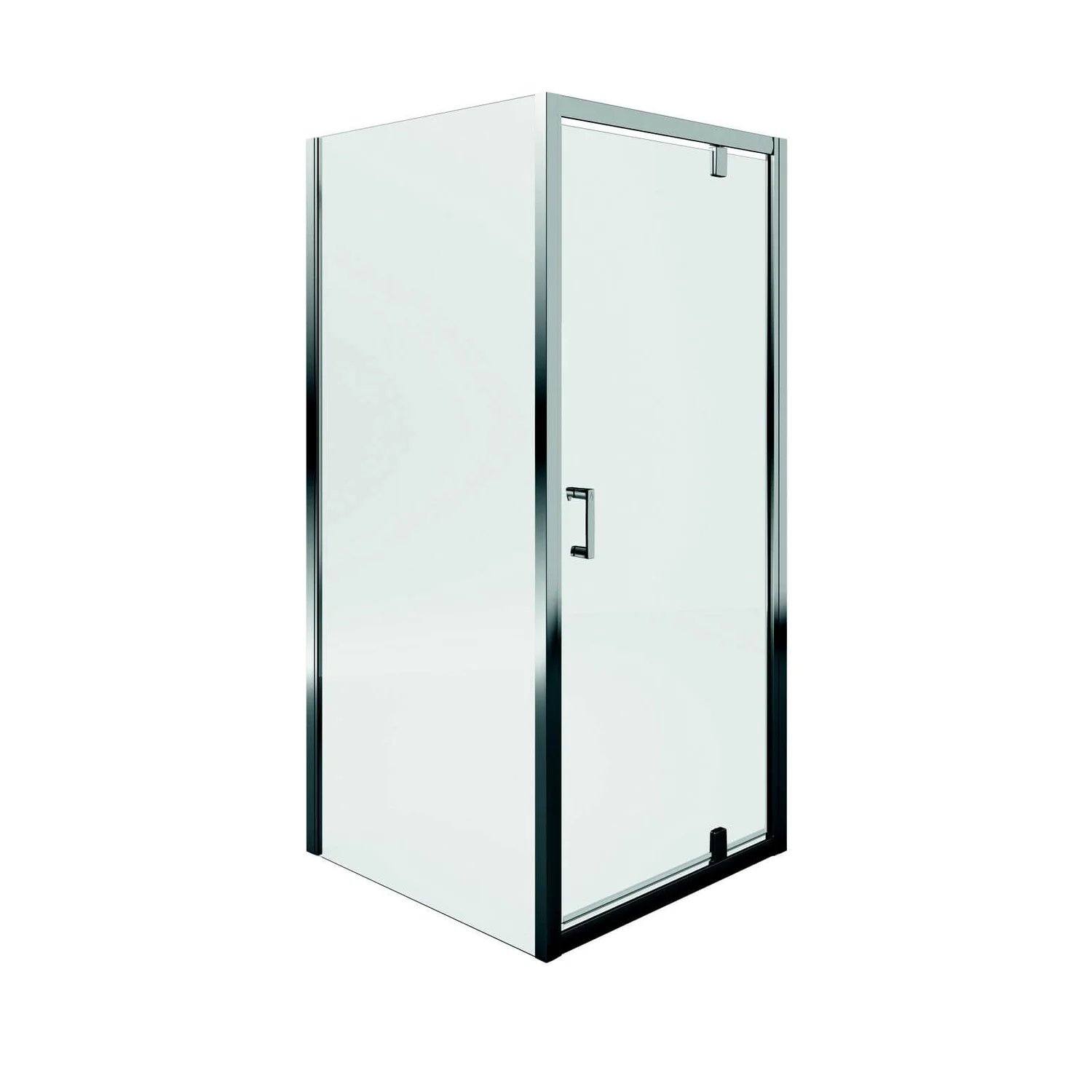Smooth-opening pivot door enclosure with a stylish design, great for a modern bathroom. Aluminium construction with polished silver-effect finish. Aqualux’s 800mm x 800mm pivot door shower enclosure features 6mm thick safety glass and an easy access door.