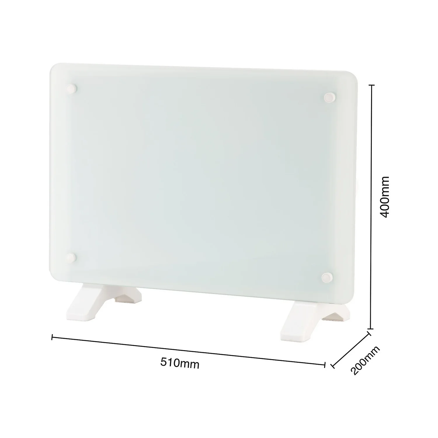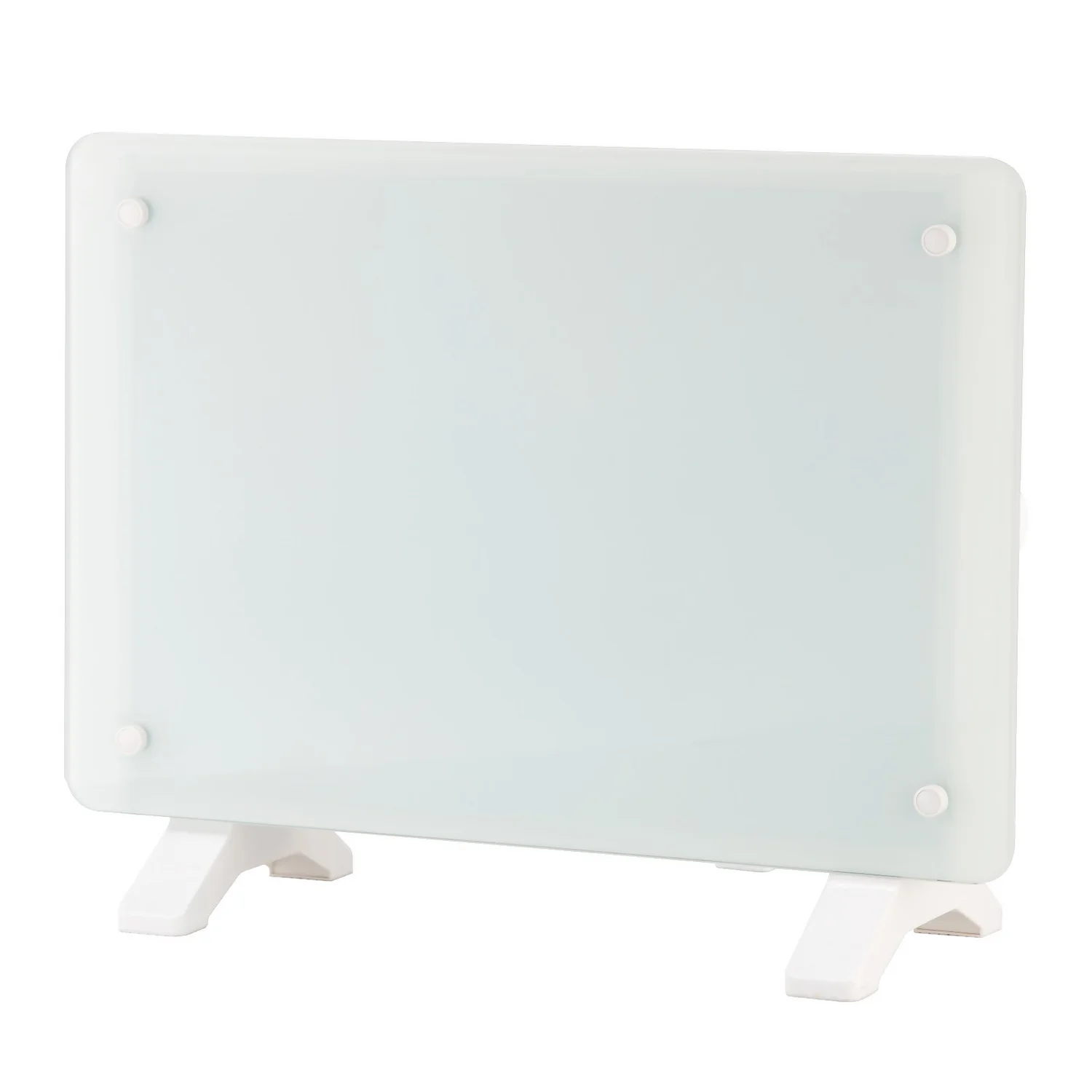 This stylish 2.2kW Arlec White Glass Panel Heater has 2 heat settings: 1100W/2200W, an electronic adjustable thermostat and tip over swtich.