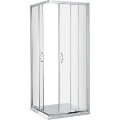 Add functionality and style to your bathroom with a separate shower enclosure. The sliding doors make it a breeze to simply ‘pop for a shower’ and the spacious design creates a relaxing atmosphere for you whilst you wash away the worries of the day. The double sliding door entry enclosure is great for the smaller bathroom where space is a priority. Manufactured from 5mm toughened safety glass, for you added safety and peace of mind, with a sleek and modern satin chrome finish on the profile. The enclosure has sliding doors for easy access and makes the most of the space. Fits snugly into a corner, to optimise space in your bathroom.