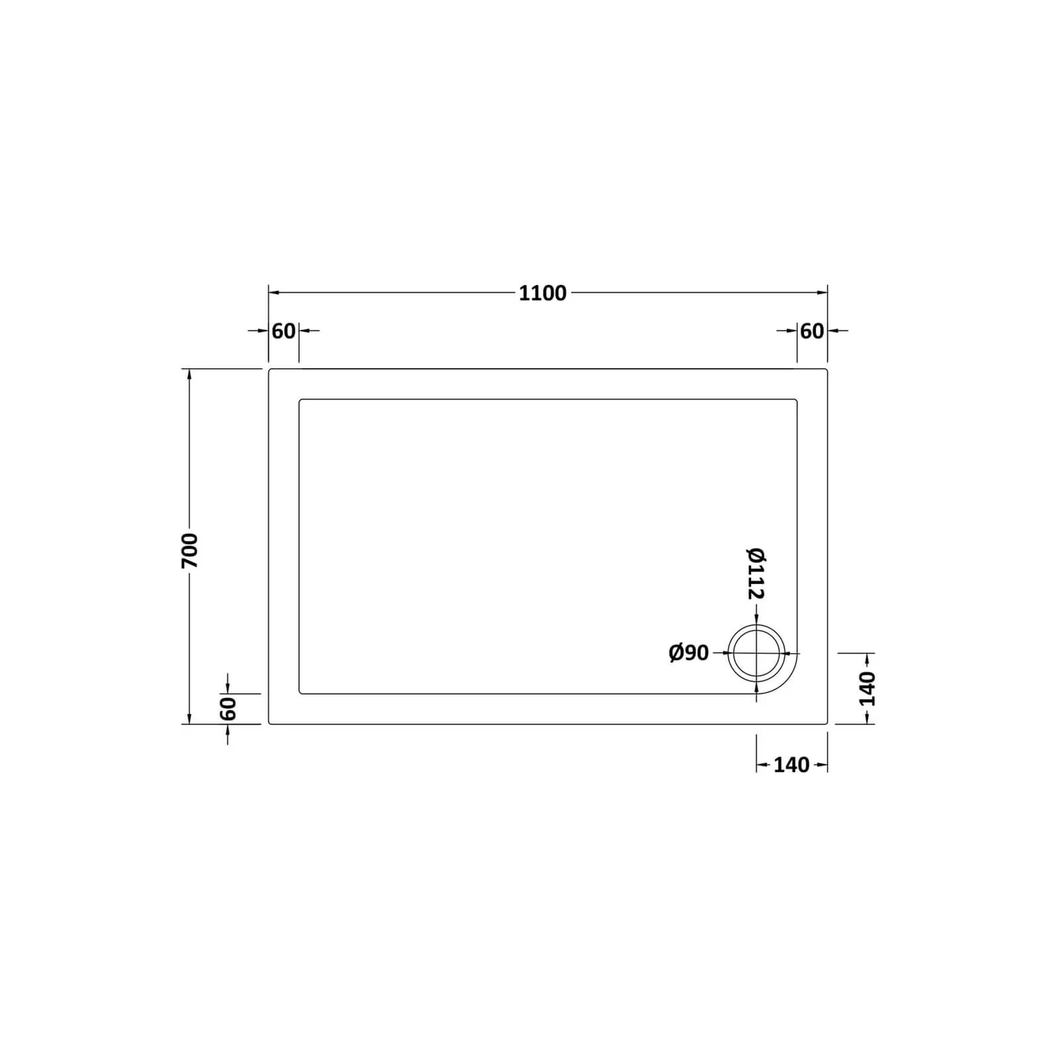Balterley Rectangular Shower Tray – 1100 X 700mm