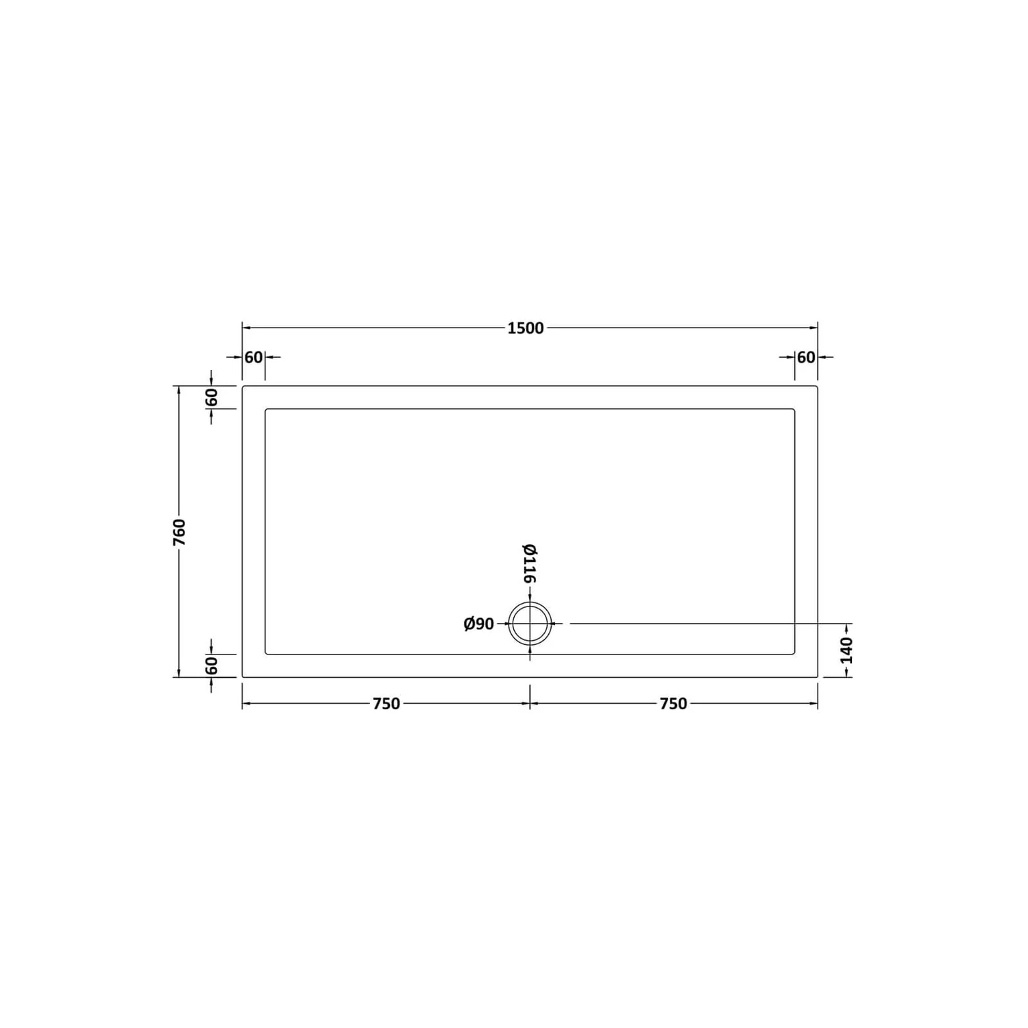 Balterley Rectangular Shower Tray – 1500 X 760mm