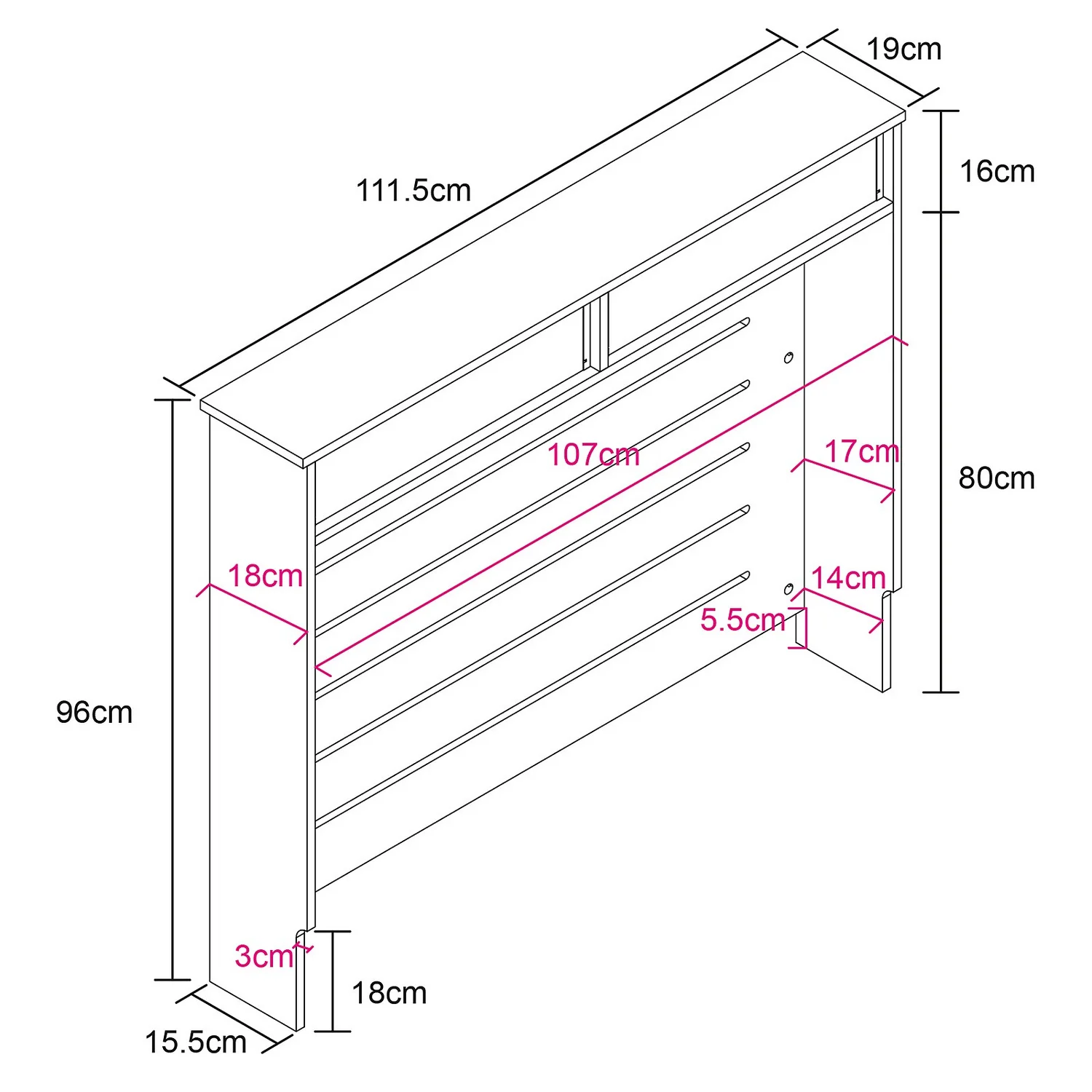 Transform any room within your home and instantly add a contemporary feel with the Medium Radiator Cover with Drawers. Featuring a modern oak-effect top surface with a half-moon curved handle, this cover includes two shallow drawers making for a handy storage solution. The cover is cut with a simple slot design to evenly distribute heat around rooms, whilst hiding radiators out of sight and protection from accidental burns. Available in Small, Medium and Large in Cream, Grey or Black.