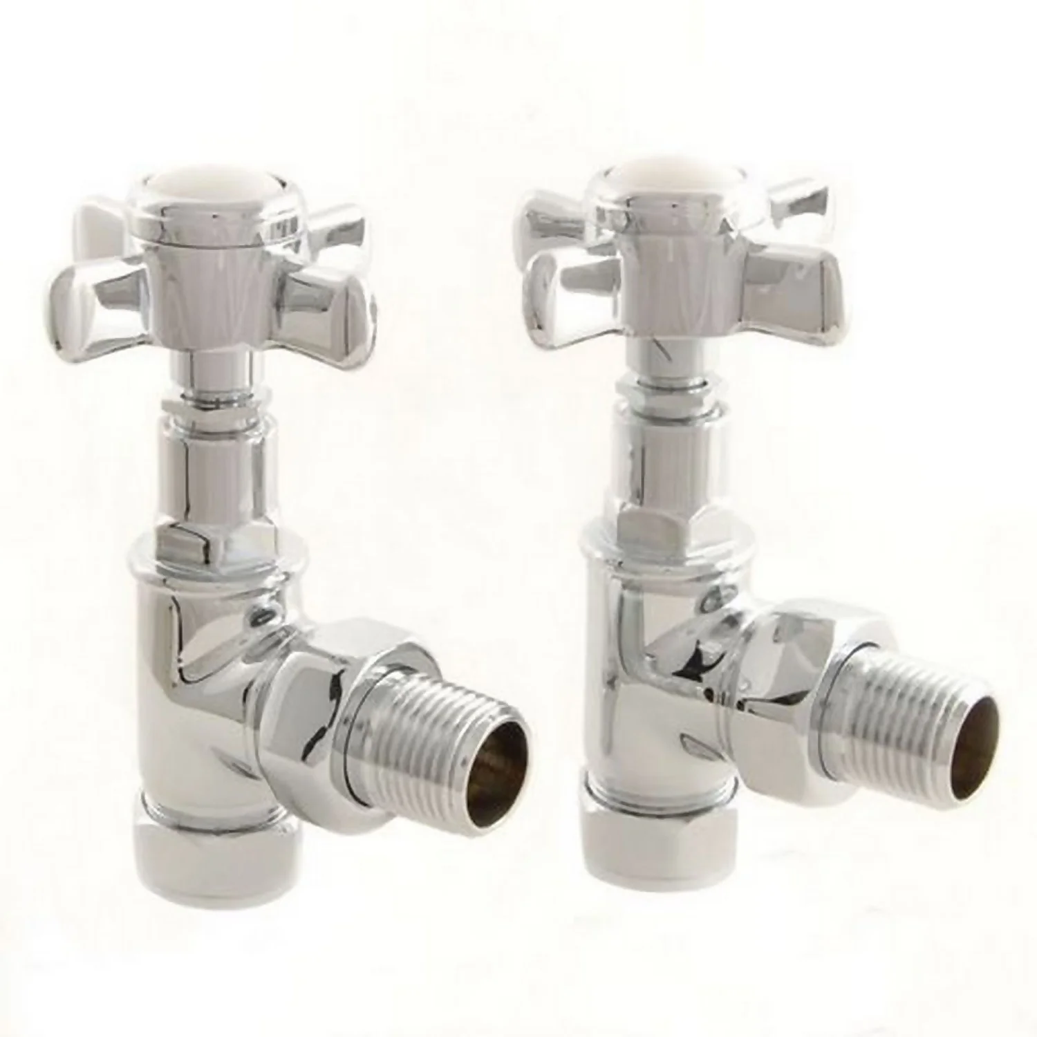 Angled Crosshead Manual Valve & Lockshield. Angled radiator valves allow you to join the central heating pipework to the radiator at an angle. Compliment your radiator.