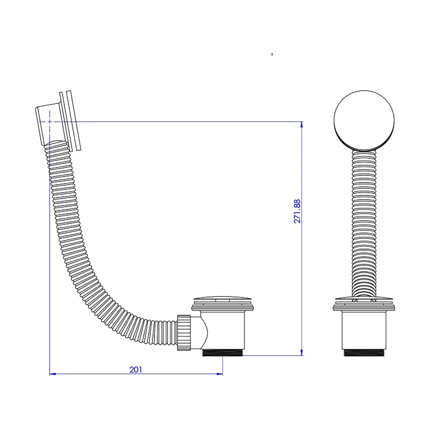 - Extends 56mm below bath