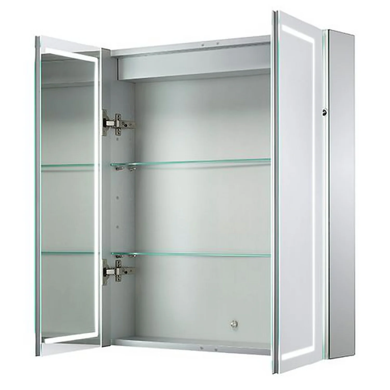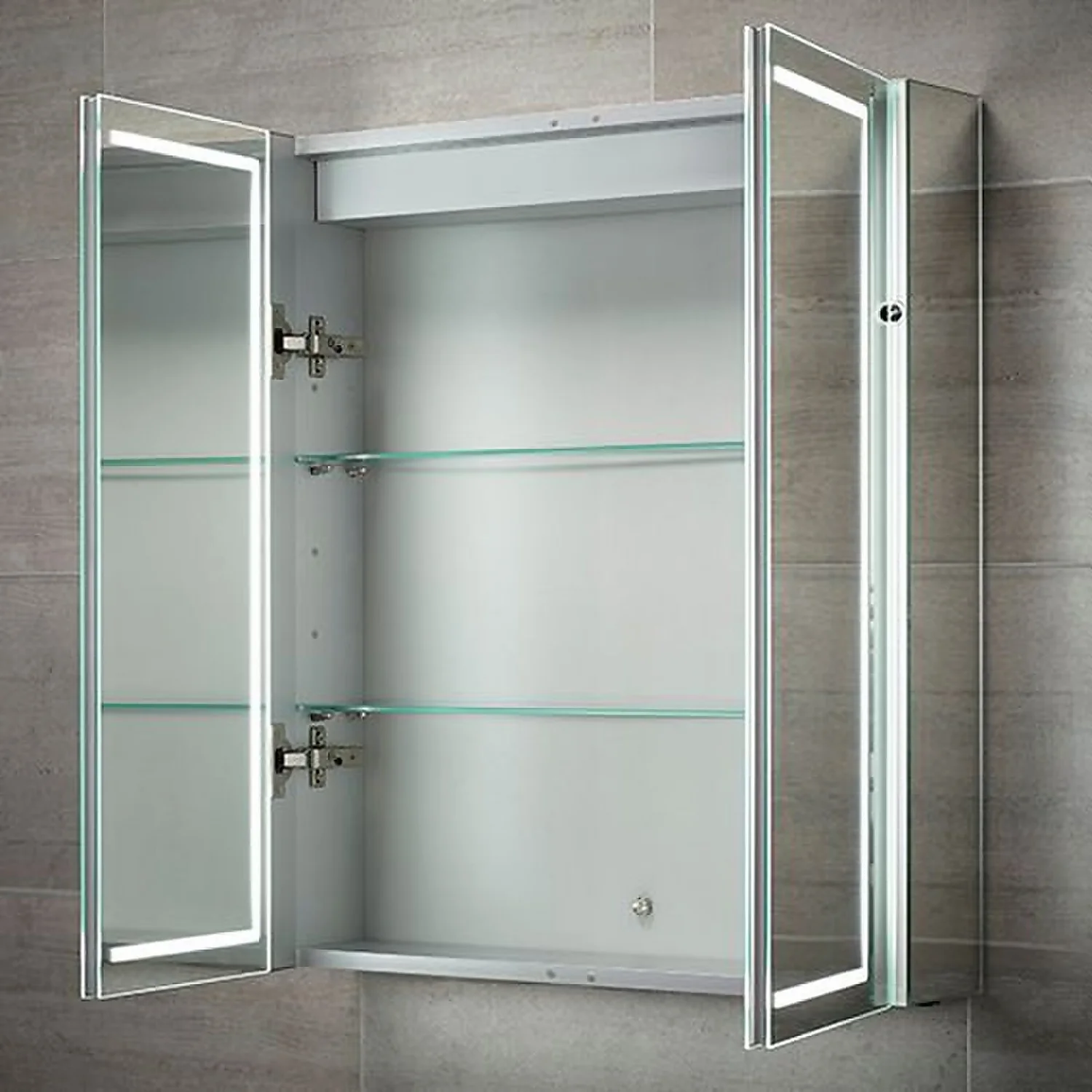 Our breath taking Castor mirror cabinet gives off a beautiful light from its LED framed doors. With a built in charger socket for, shelves for storage and also doors that are mirrored inside the mirror cabinet is as much practical as it is glamorous. We also have a single door cabinet available for those who have a little less space.