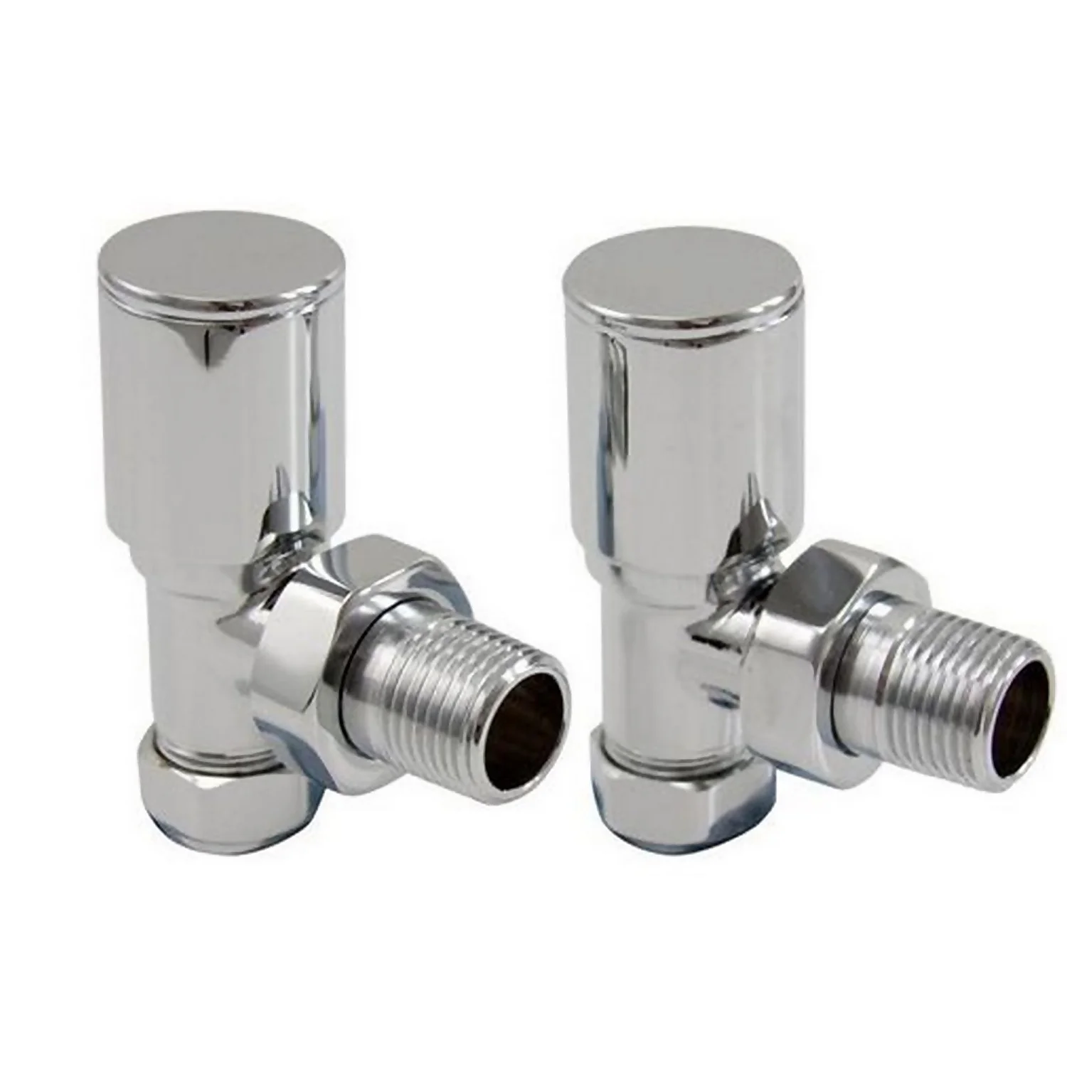 Chrome Angled Manual Radiator Valve & Lockshield Set. The benefit of using Corner valves when pipe work is coming from the wall is that the radiator head will be pointing upwards and will not increase the overall depth of your radiator. Compliment your radiator.