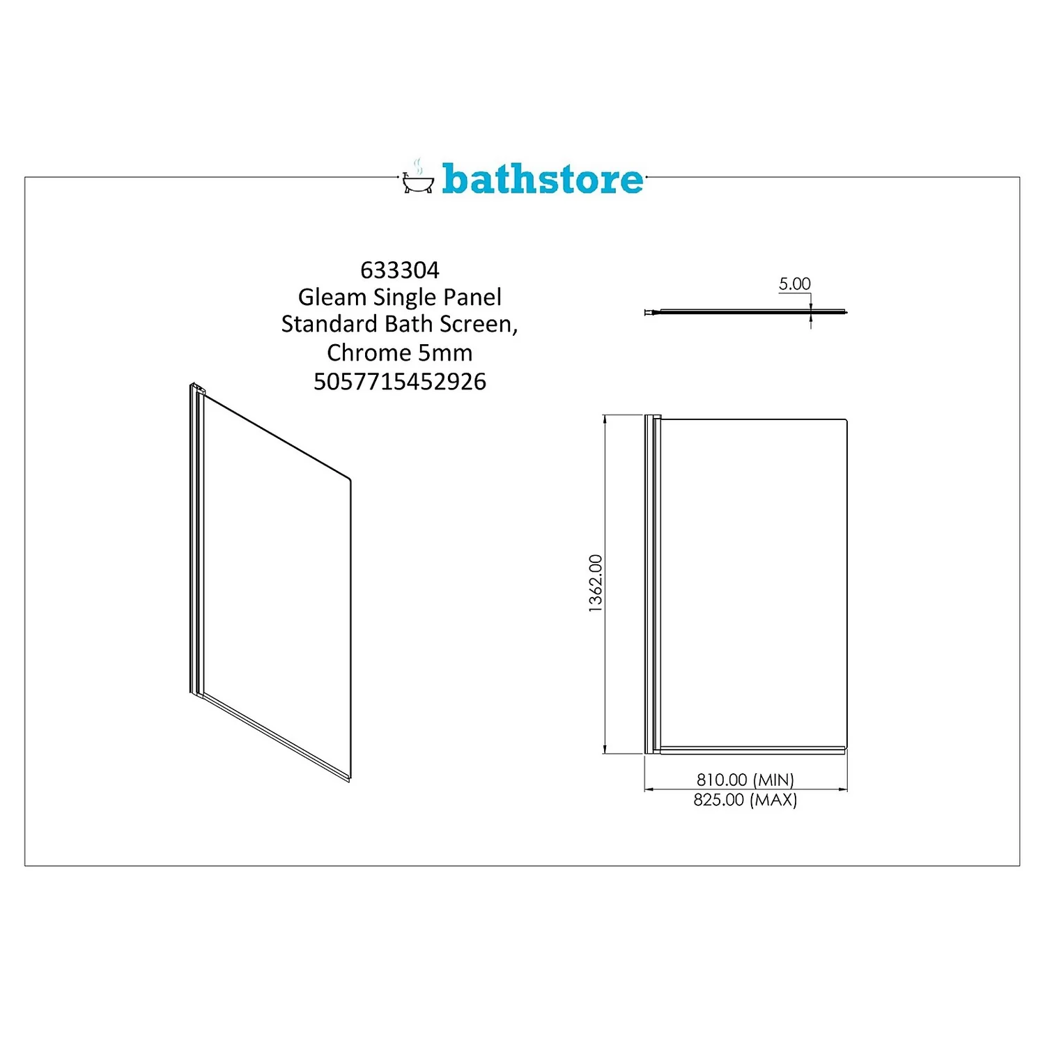 | Model Number | Gleam Single Panel Standard Bath Screen |