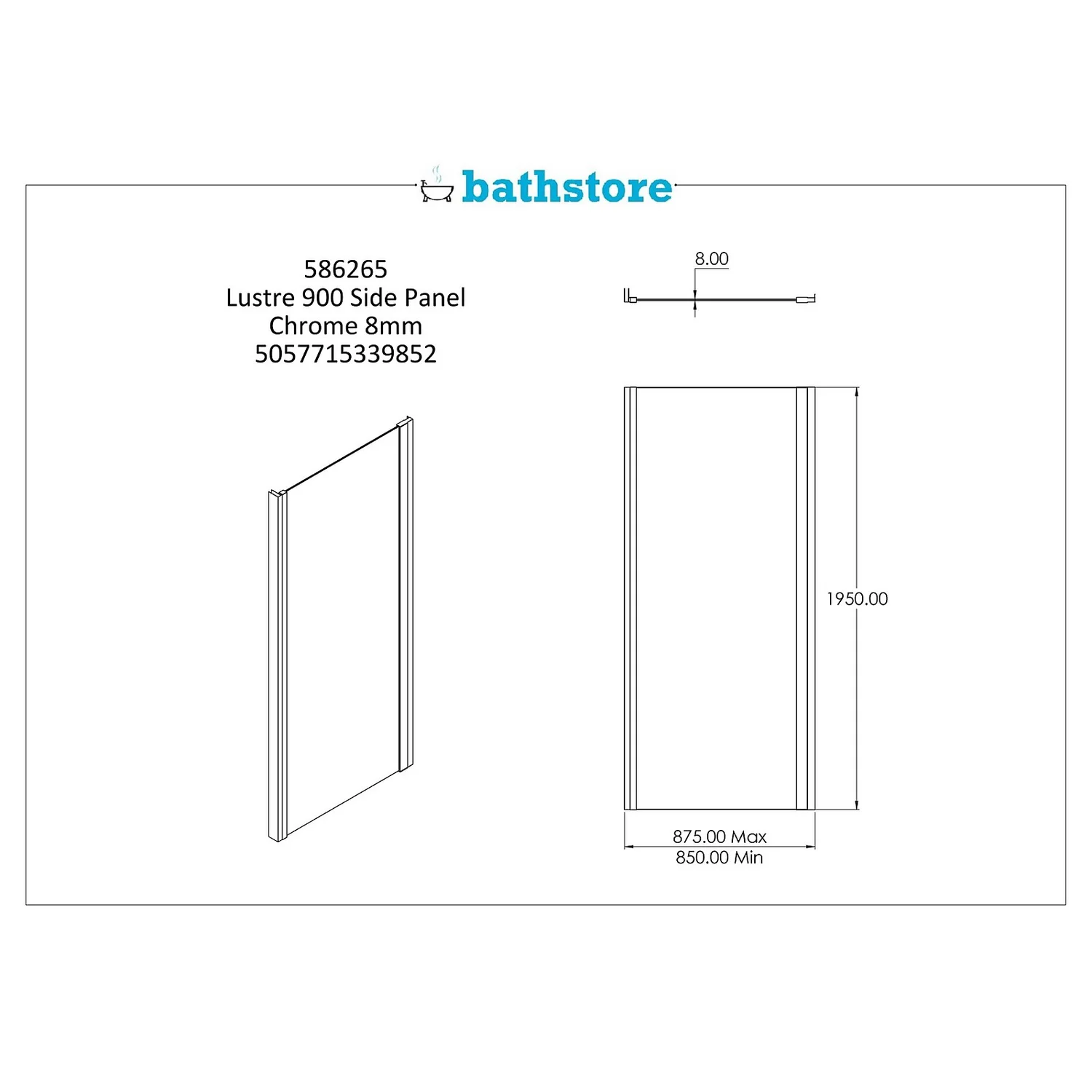 This 900mm Side Panel is compatible with any of our Lustre Hinge, Bi-Fold and Sliding Doors.