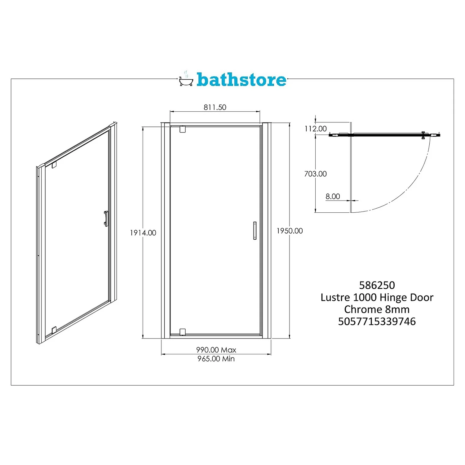 Bathstore Lustre Hinged Shower Door – 1000mm
