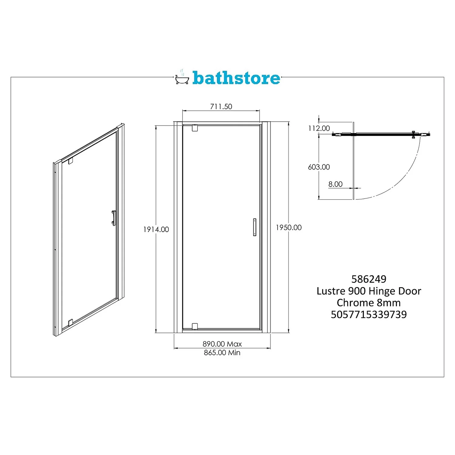 Be the first to review “Bathstore Lustre Hinged Shower Door – 900mm” Cancel reply