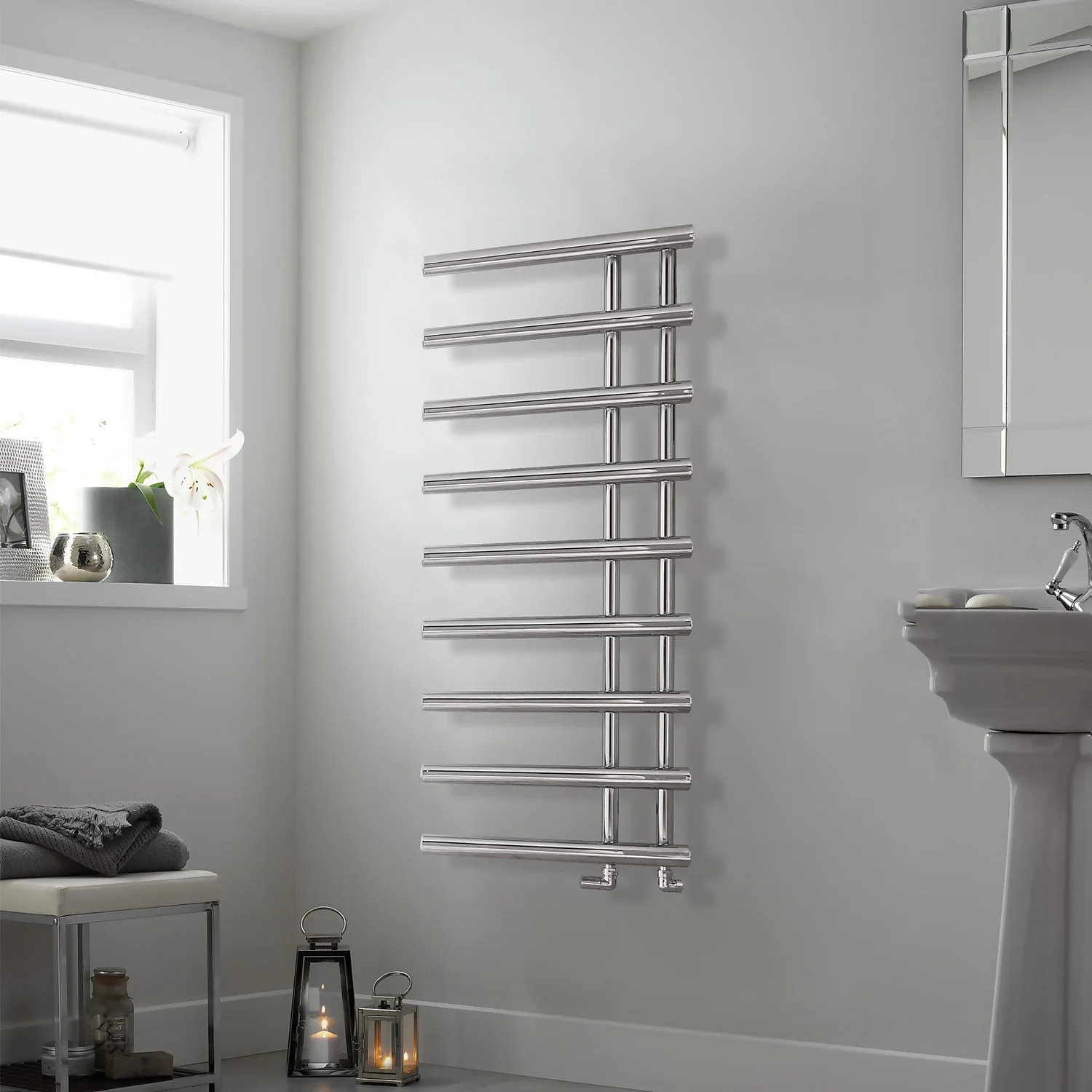 Mayfair Chrome Radiator 1245 x 500. The Mayfair can be mounted left or right as required. Multiple towel space provides a busy bathroom with the perfect storage solution.