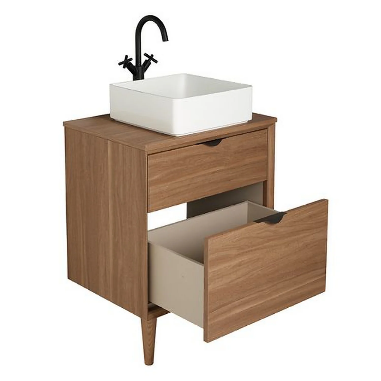 The Noir Craft 600mm Vanity Unit combines on-trend style with absolute practicality. Caramel wood, great storage and classic mid-century styled legs, makes this unit have a luxe bathroom appearance. As part of our Noir collection, it can also be combined or matched with other Noir products to create a stunning co-ordinated display. Worktop and basin sold separately.