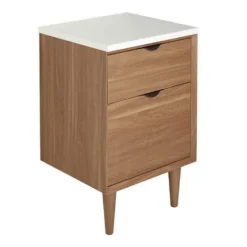 This gloss white solid surface stone effect counter top is designed to fit seamlessly on top of the craft 500 unit. Its gloss white finish provides a pleasing contrast to the caramel-walnut wood of the craft unit and it creates a robust base for a washbowl and tap to sit on.