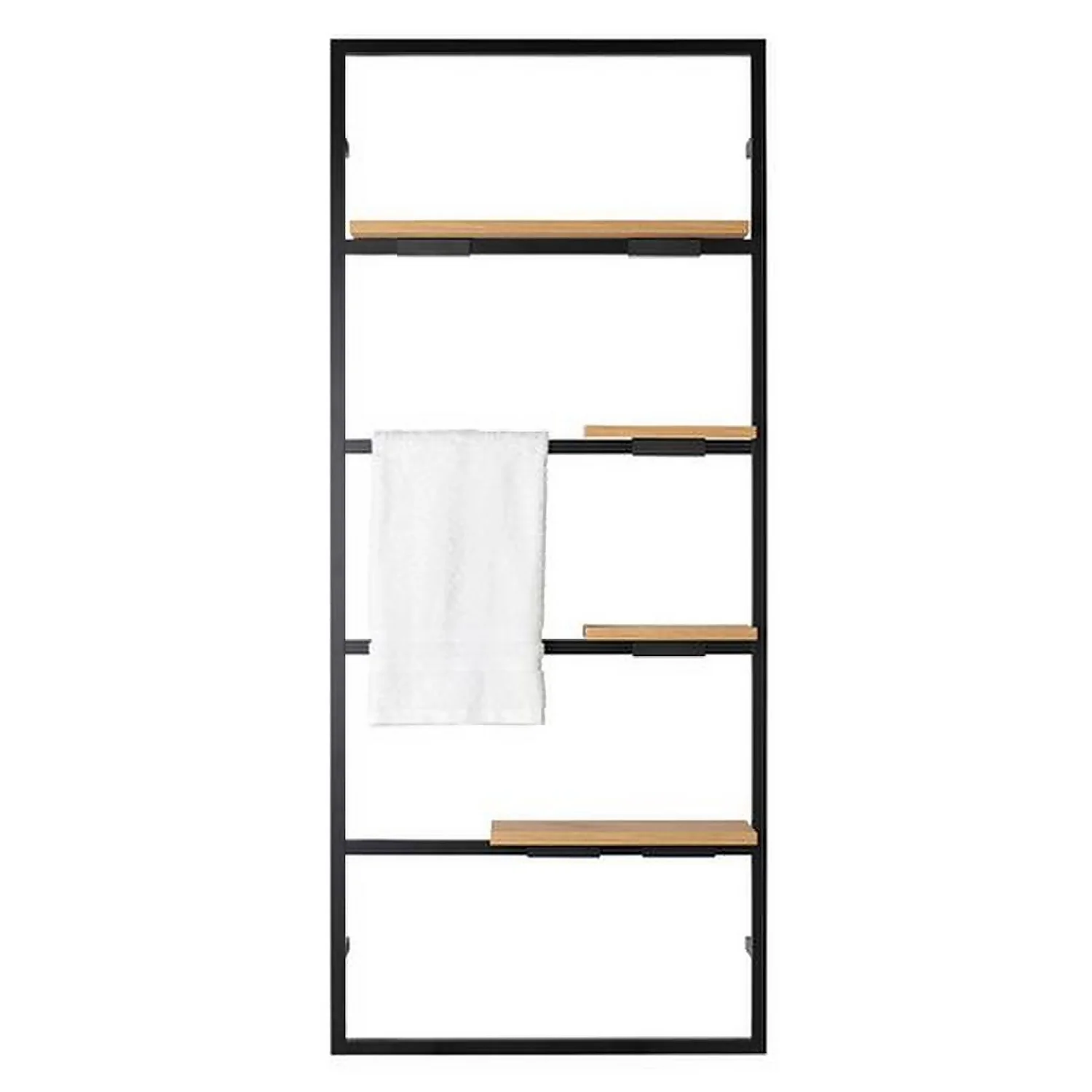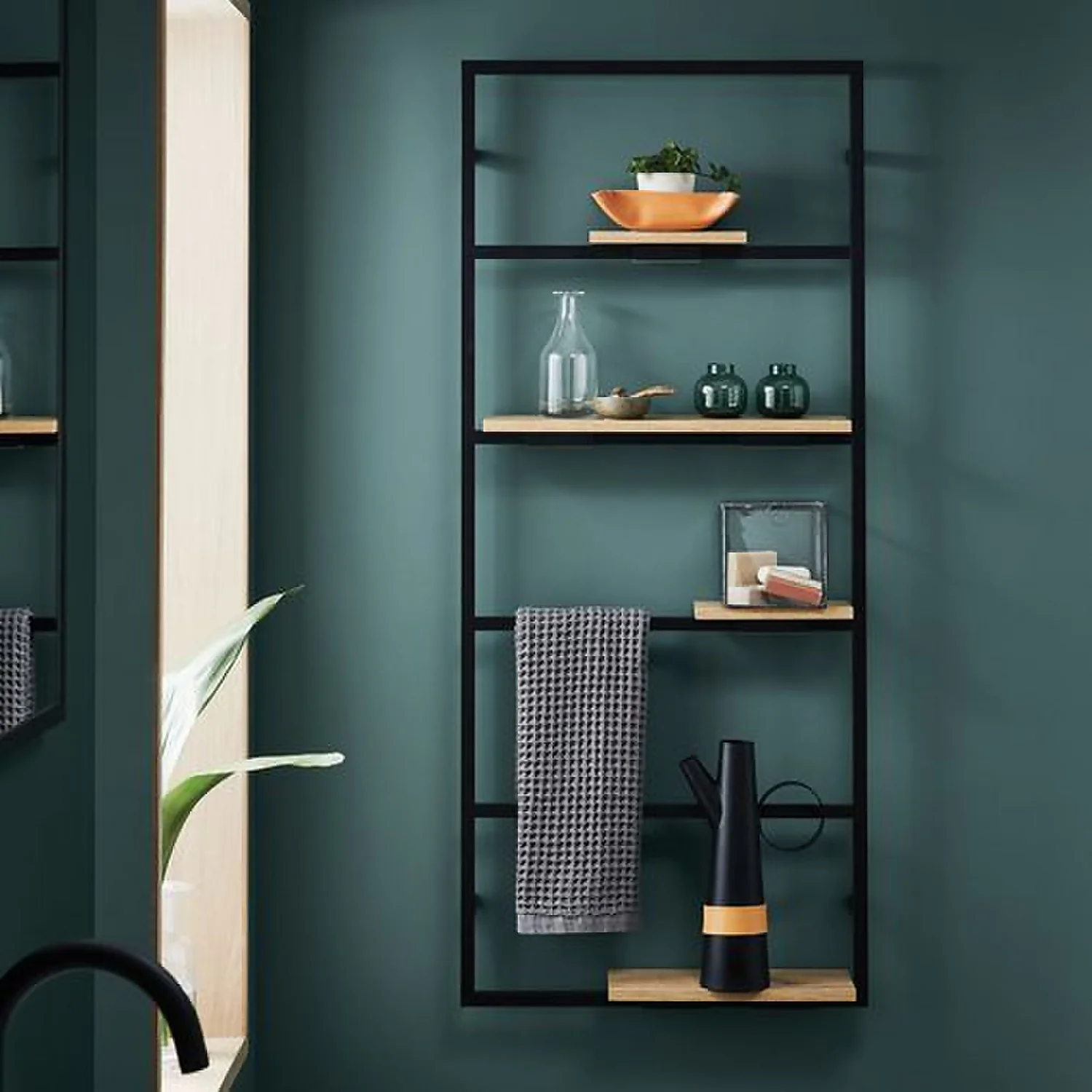 The Noir Wall Hung Shelving unit is a contemporary and stylish display unit, constructed in aluminium and covered in a Matt Black finish. With four wood effect shelves, its perfectly complements the Noir Frame Basin Units in the larger Noir Collection. The shelves are a great way of styling your bathroom, displaying favourite toiletries as well as books and the odd towel. Function and form truly meet in this shelving unit.