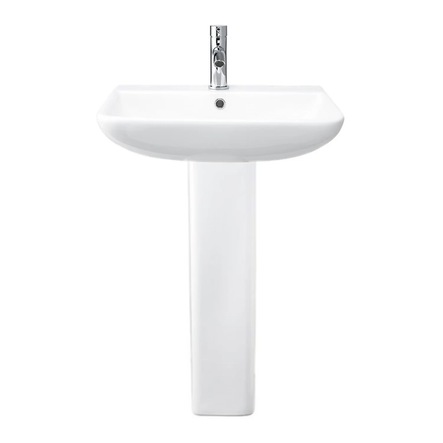 If you need to furnish a sleek, modern bathroom, this contemporary basin and pedestal set will be just the thing. Tap not included.