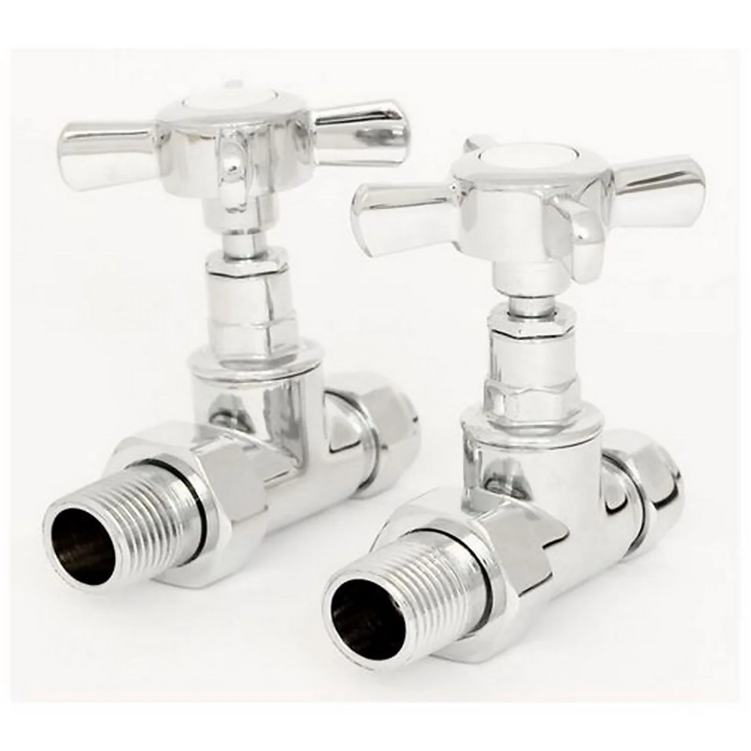 Straight Crosshead Manual Valve & Lockshield. Straight Radiator Valves join the radiator to the central heating pipework in a straight, horizontal line. The pipework comes from the floor. Compliment your radiator.