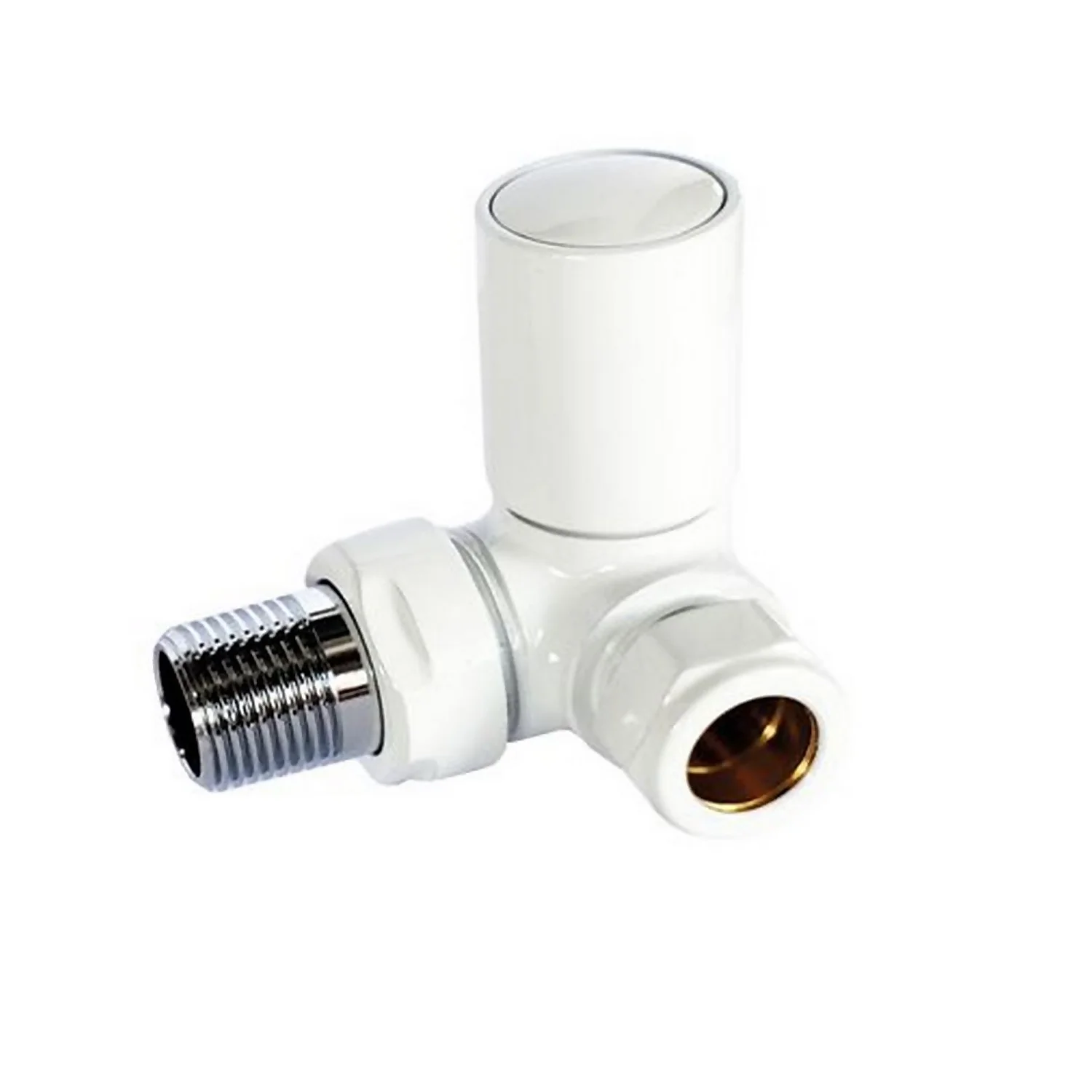 White Corner Manual Radiator Valve & Lockshield Set. The benefit of using Corner valves when pipe work is coming from the wall is that the radiator head will be pointing upwards and will not increase the overall depth of your radiator. Compliment your radiator.