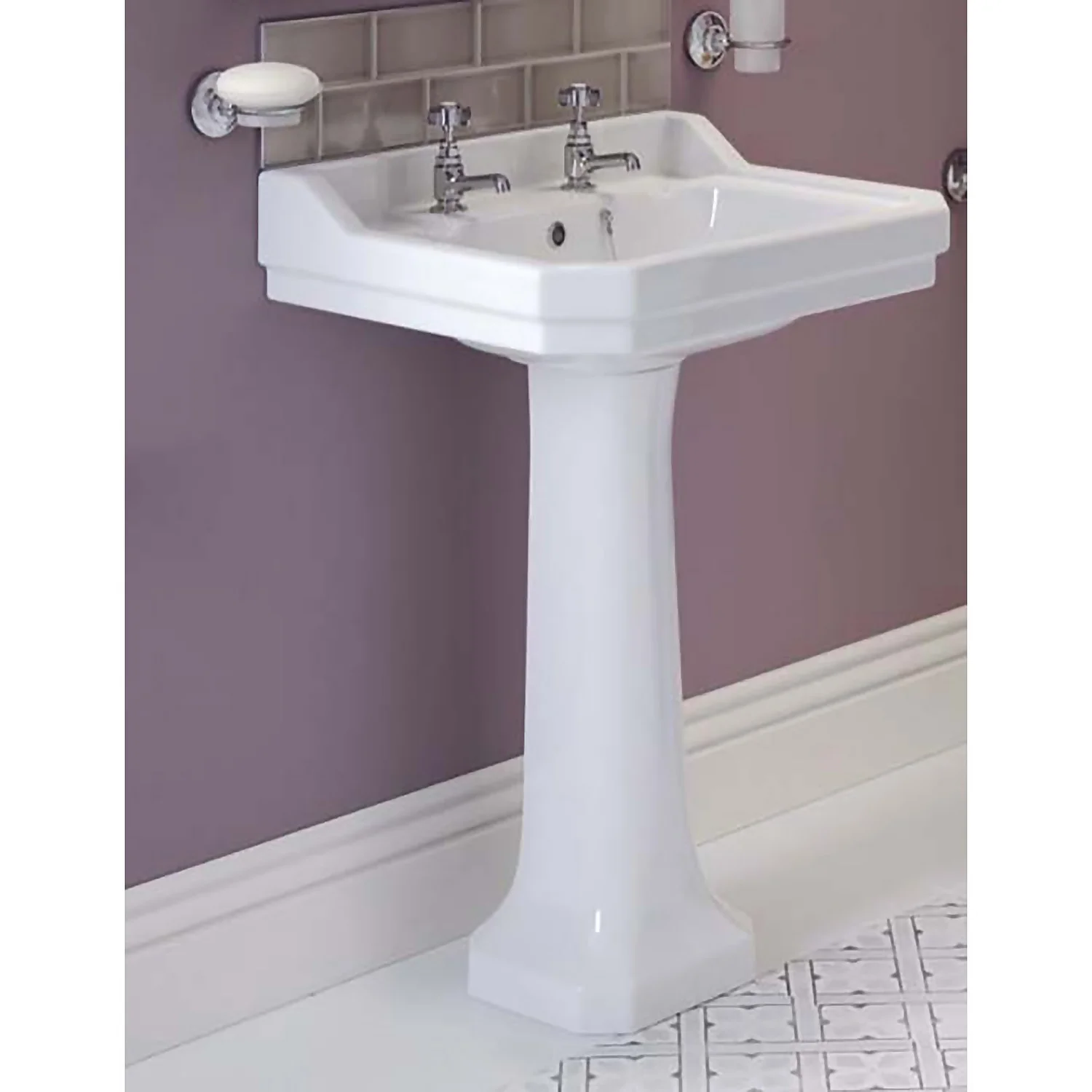 The Whitechapel 2 tap hole basin with full pedestal has a generous sized bowl. Accompanying the 2 soap ledges is a prominent upstand to give you an authentic traditional style, as well as hole for a classic chain and plug waste. Perfectly paired with out Bensham tapware to create an ultimate timeless look.