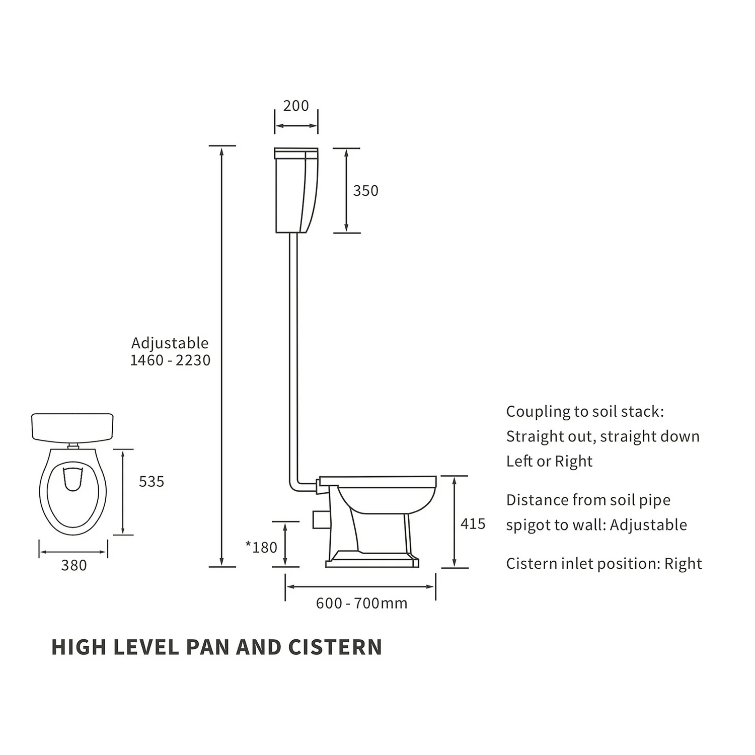 The Whitechapel high level toilet is paired with a luxurious soft close wooden seat, which is as much beautiful as it is practical. A high level toilet is perfect for those going for an authentically traditional styled bathroom, with a bright chrome pipe joining the pan and cistern as well as delicately detailed hinges attaching the cistern to the wall. The open back design means it is compatible with both straight or angled soil pipes
