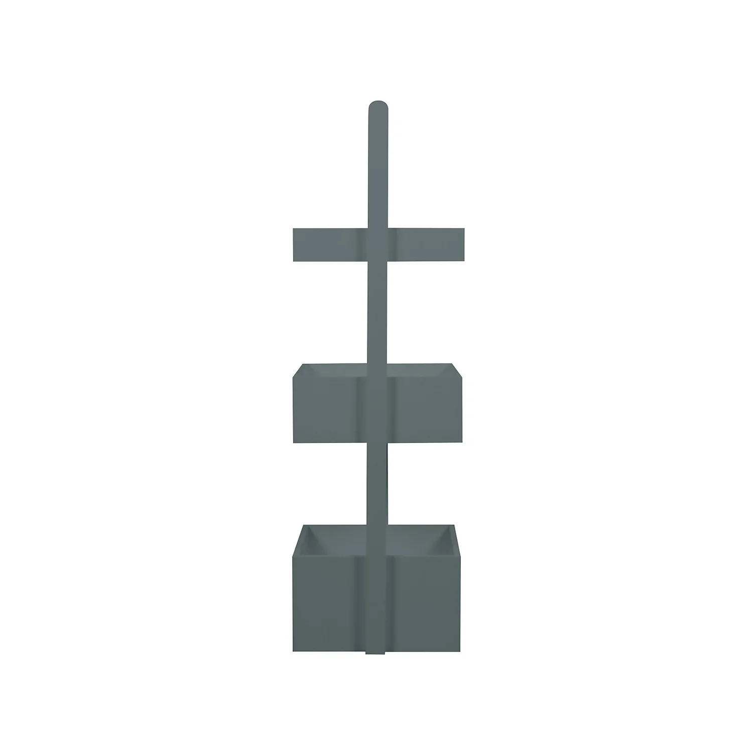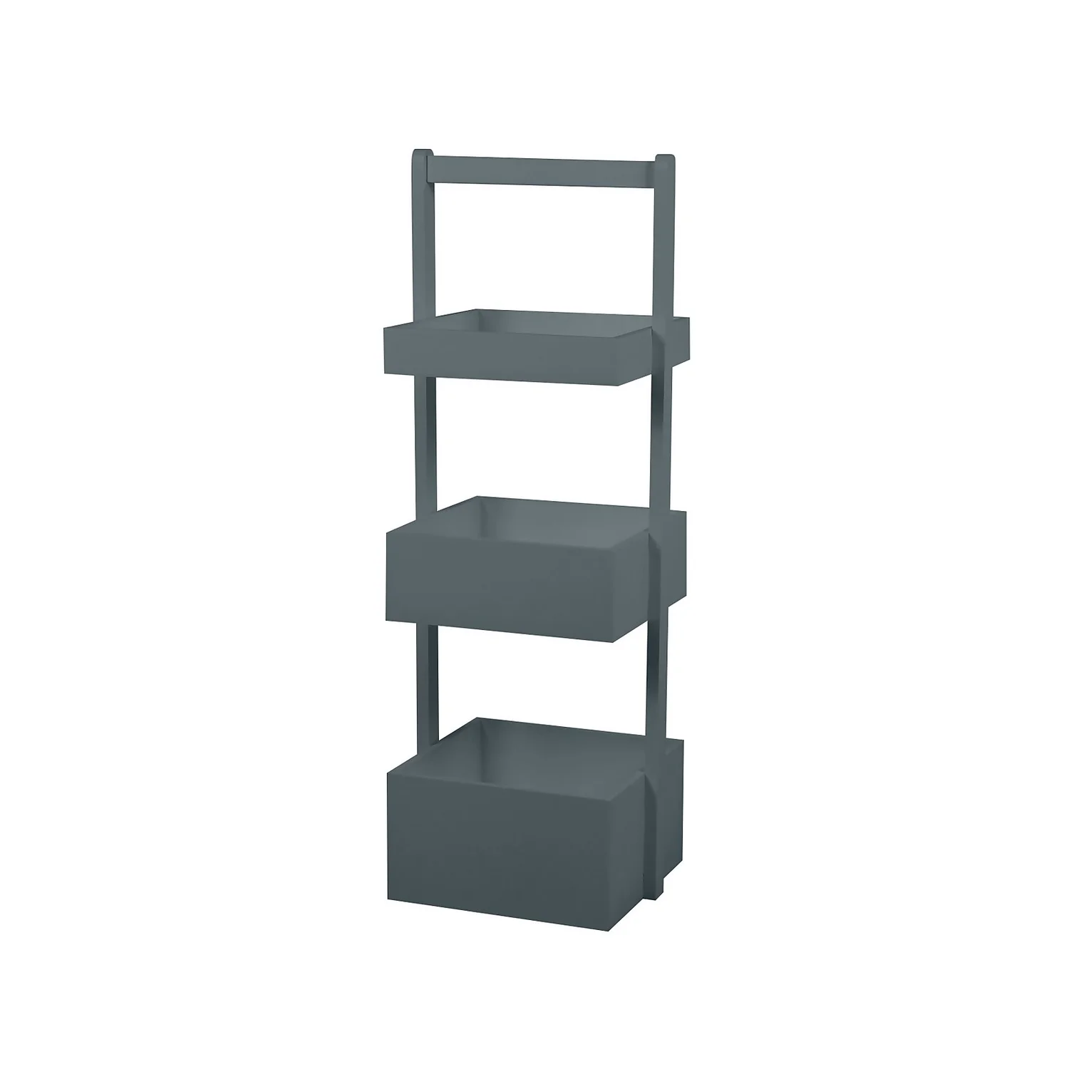 The simple and sleek design of the grey 3 tier caddy provides roomy storage in your bathroom.