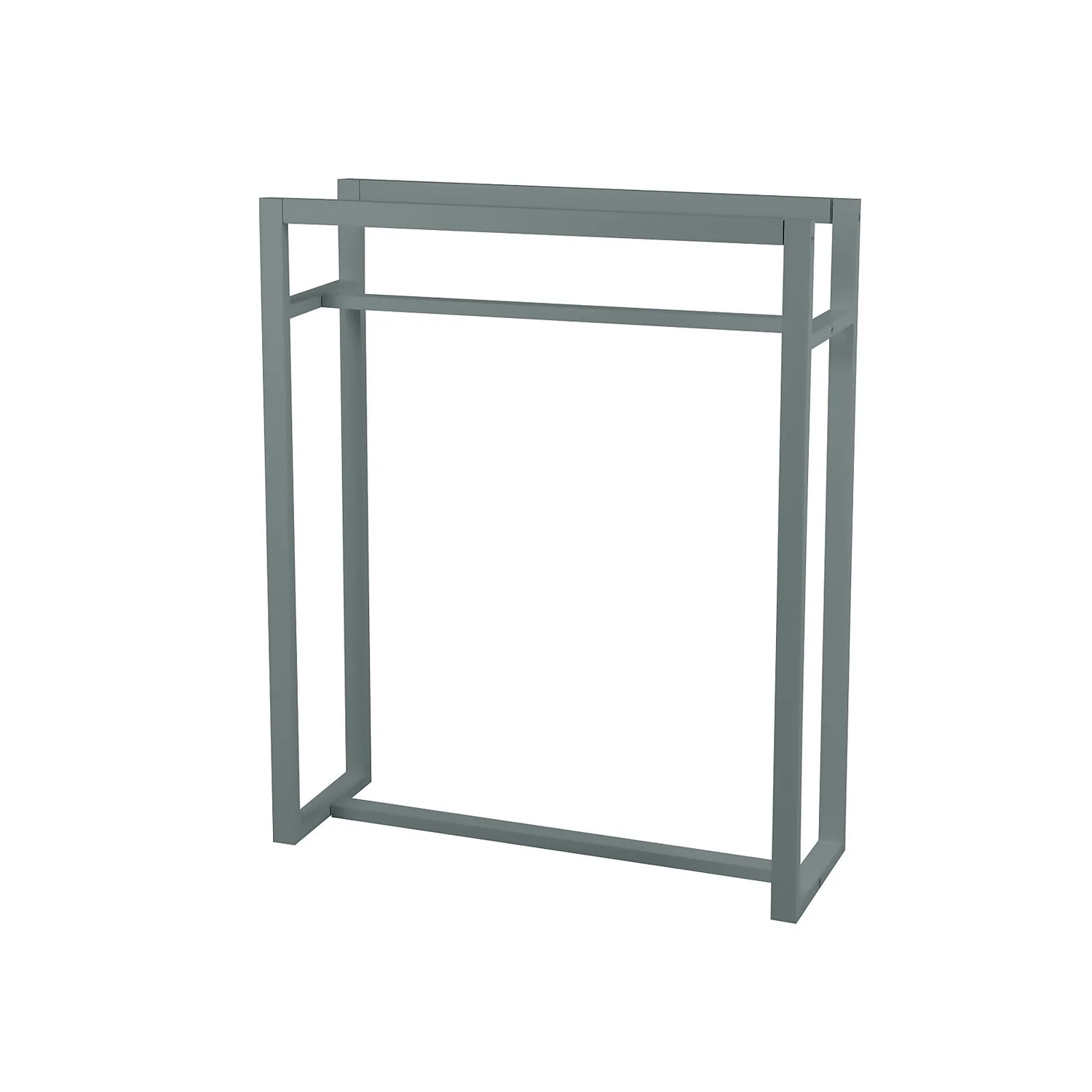 This grey wooden square towel stand is a simple solution to bathroom clutter and replaces the need for a permanent, fixed towel rail.