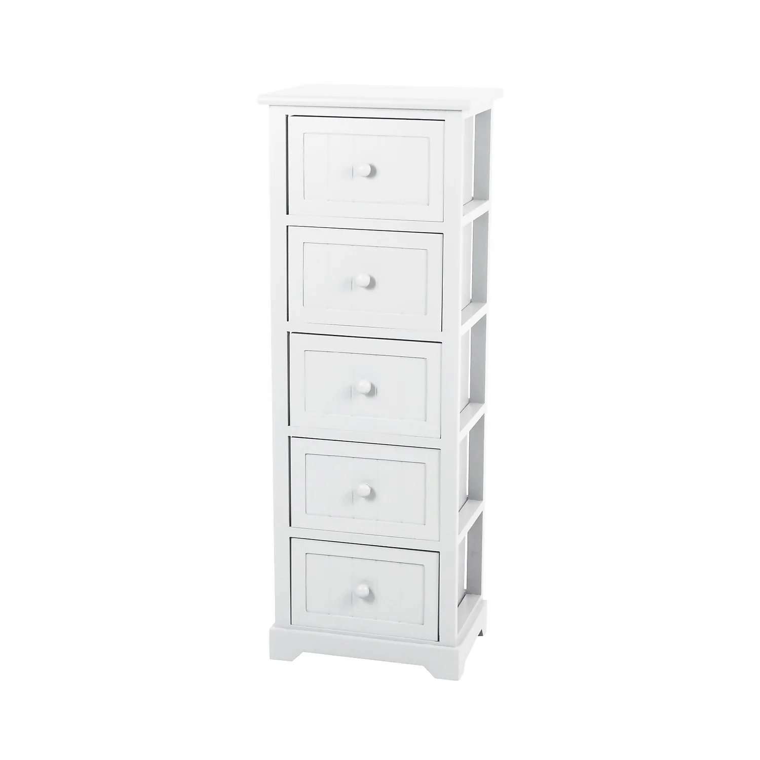 Painted in a calm classic white and with its beautiful design, this storage unit will bring simple sophistication to solving storage in the bathroom.