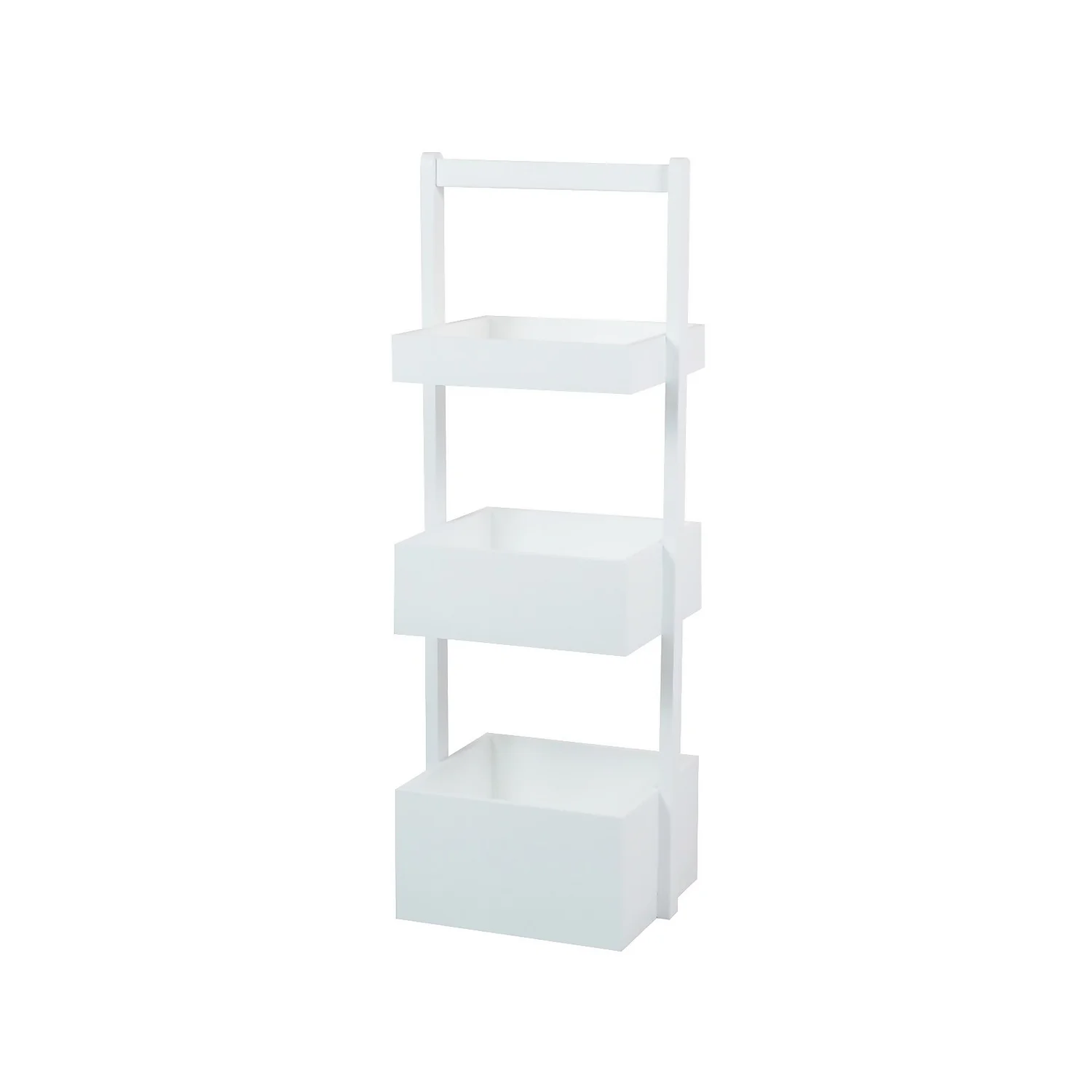 The simple and sleek design of the white 3 tier caddy provides roomy storage in your bathroom.