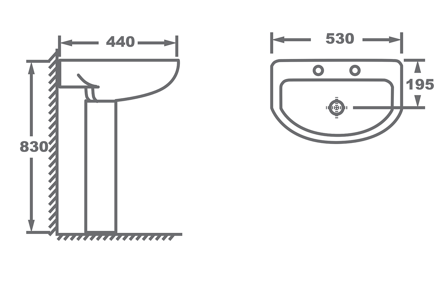 Be the first to review “Elmley Ceramic Basin With Pedestal – 2 Tap Holes” Cancel reply