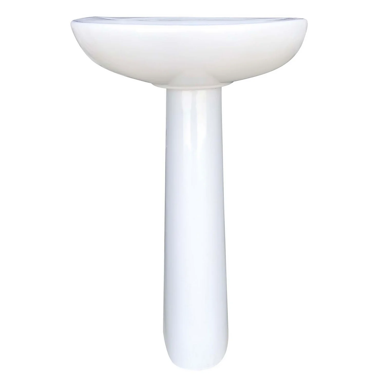 The Elmley Ceramic Basin with Pedestal is a large basin, ideal for family bathrooms and two tap holes suitable for traditional pillar taps.