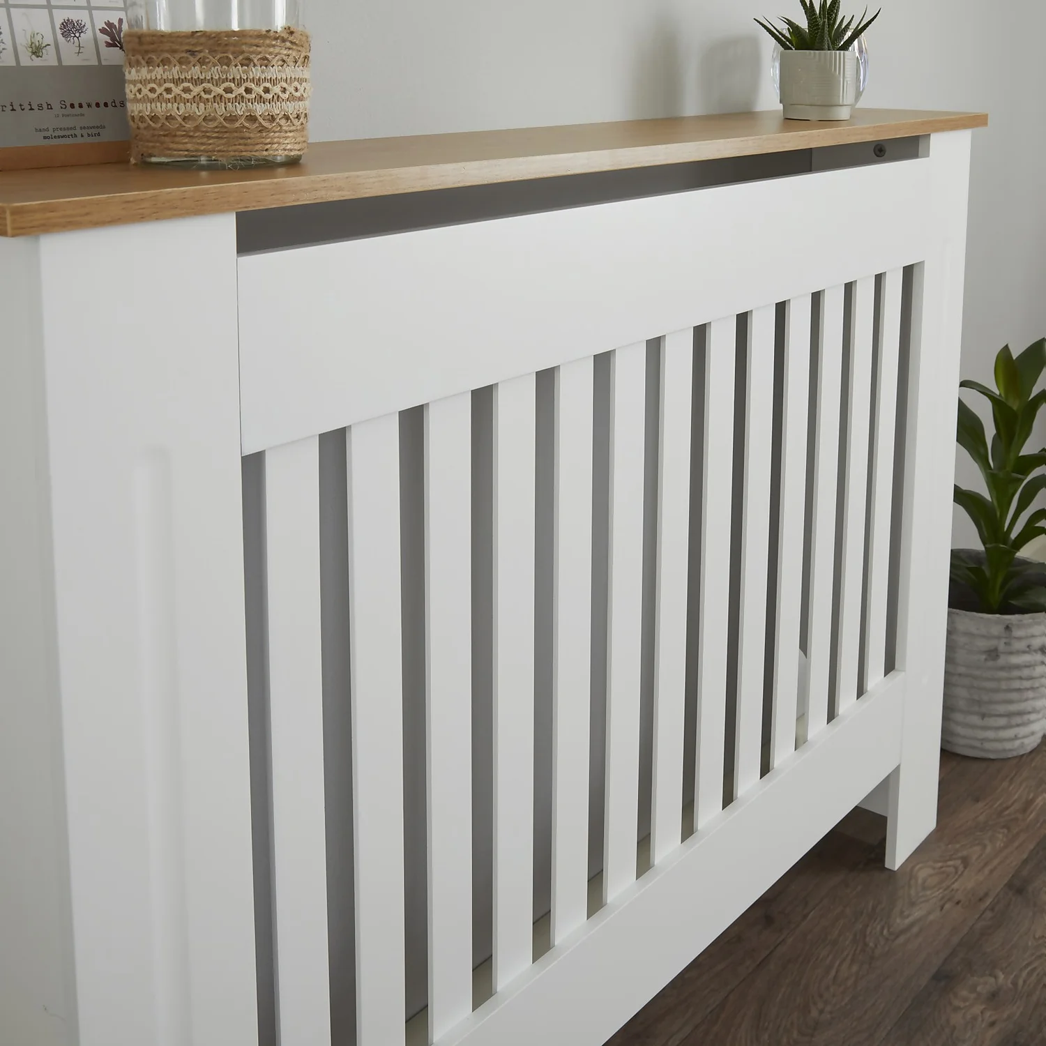 Lloyd Pascal Radiator Cover With Vertical Slatted Design In White & Natural – Medium