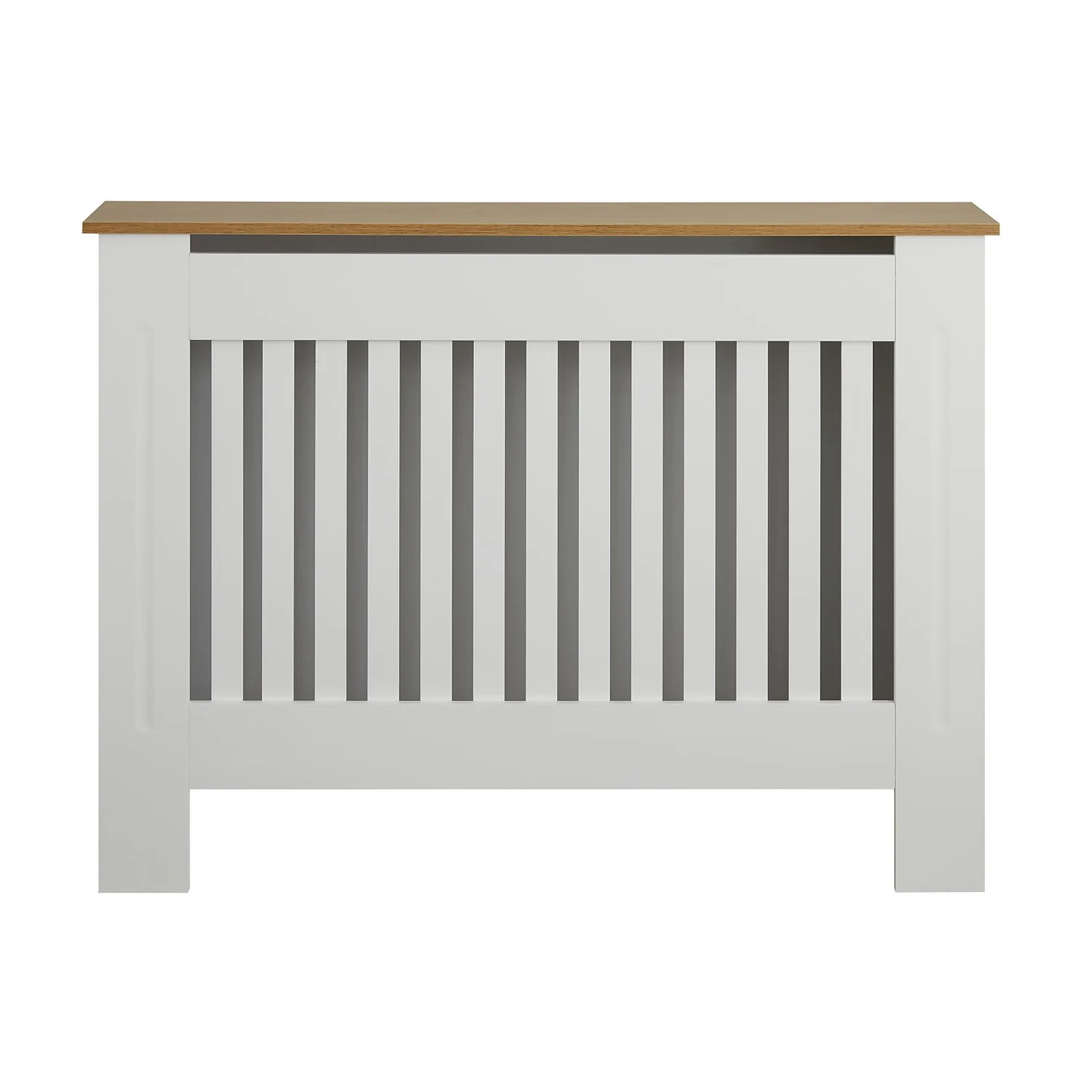 The Medium 2 Tone Slatted Medium Radiator Cabinet hides radiators whilst adding a shelf to your room. It allows heat to distribute but also prevents children and pets from being burnt. It has a 2 tone finish, white with a wood top and a slatted front and is suitable for any room.
