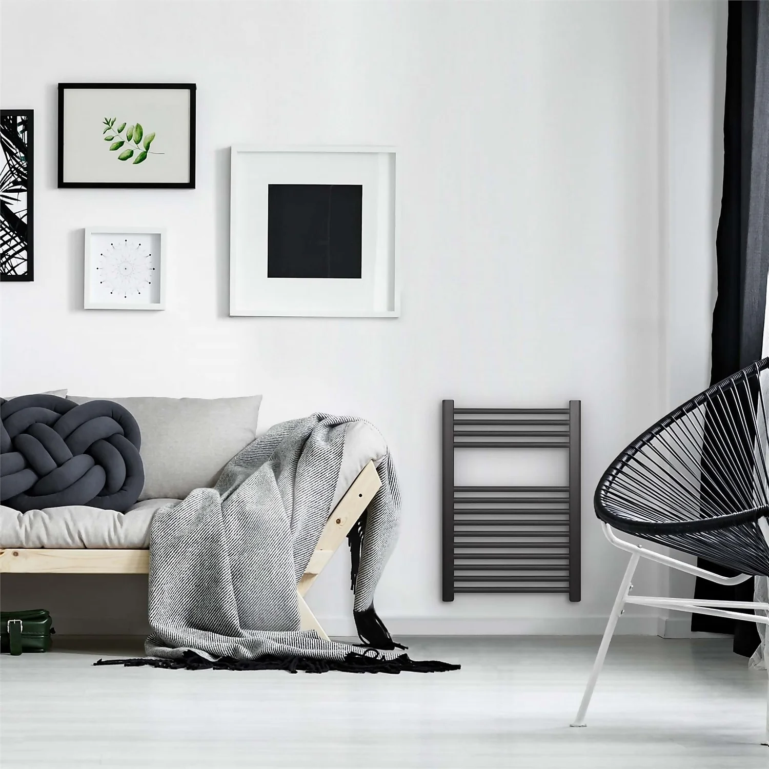 None Ladder Style Heated Towel Rail Radiator With 14 Horizontal Round Tubes 750mm X 500mm – Anthracite