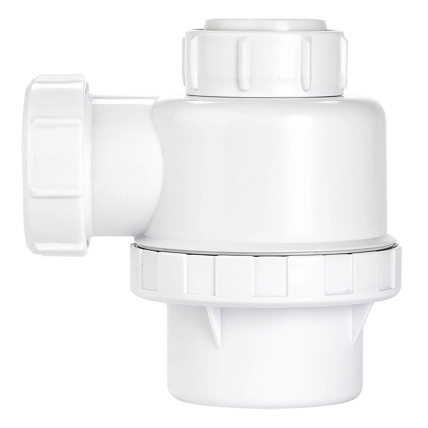 This high quality 32mm bottle trap is an integral part of the waste system providing a tight water seal and preventing unpleasant odours from entering the property. Manufactured from plastic and in white, this universal 32mm bottle trap allows for an easy cleaning solution with a removable bowl ideal for plumbers and DIY.