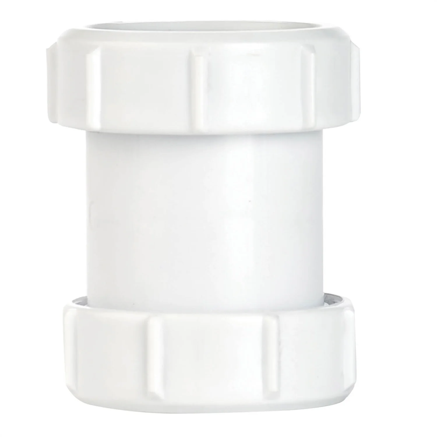 A high quality compression connector suitable for 32mm use and available in white, ideal for connecting two 32mm pipes together. An essential plumbing product for plumbers and DIY.