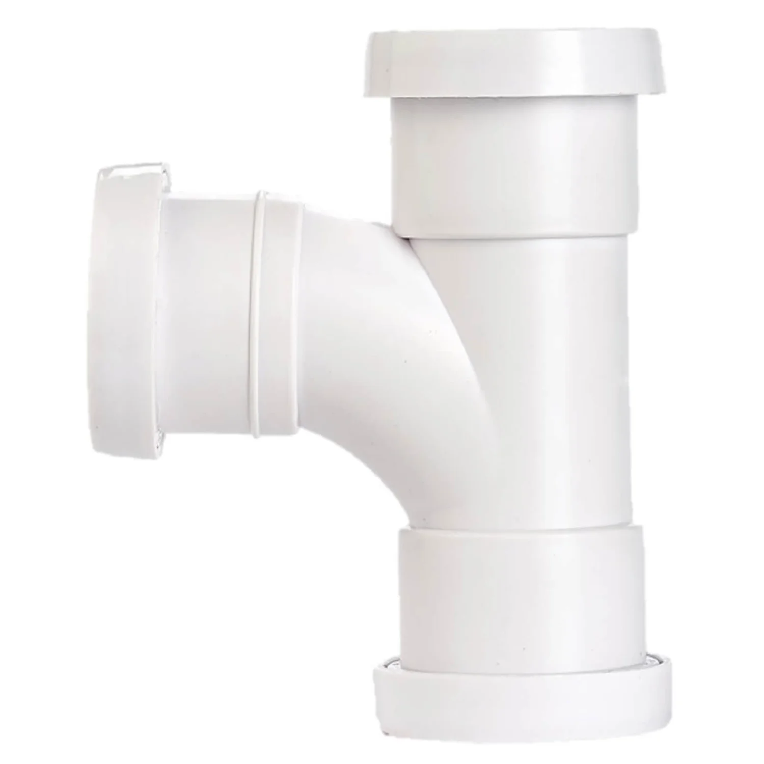 A high quality push-fit swept tee available in white with a 32mm connection for push fit and easy seal, this essential plumbing product is ideal for plumbers and DIY bathroom maintenance.