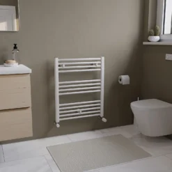 None Ladder Style Heated Towel Rail Radiator With 12 Horizontal Round Tubes 700mm X 400mm – Chrome