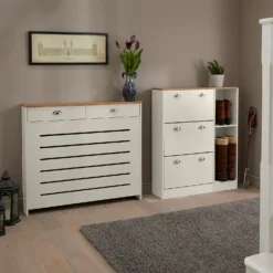 Barnford Small Radiator Cover With Drawer In Cream & Oak Effect