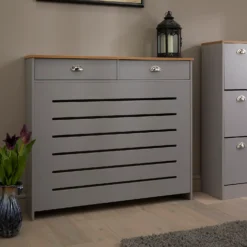 Barnford Medium Radiator Cover With Drawers In Grey & Oak Effect