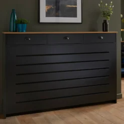 Barnford Large Radiator Cover With Drawers In Black & Oak Effect