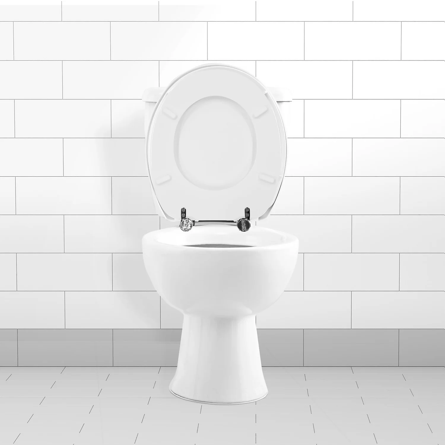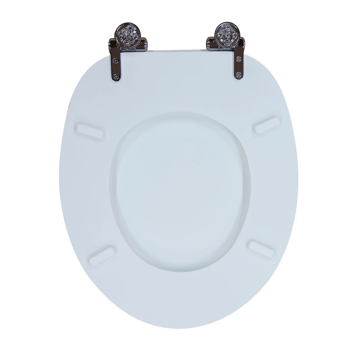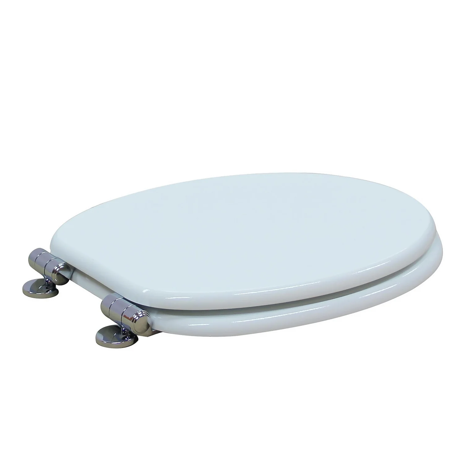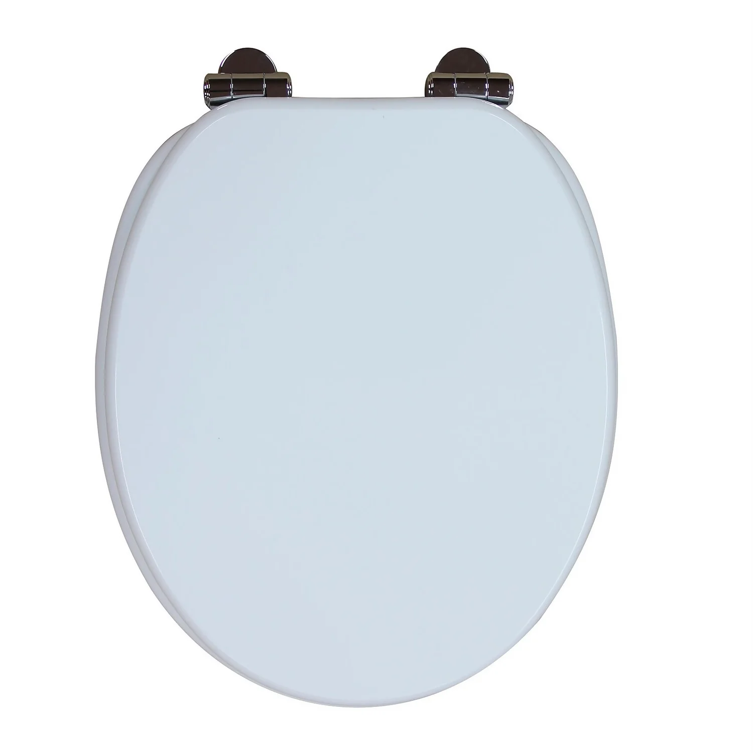 Add a delightful decorative touch to your bathroom, en-suite or cloakroom with this wooden toilet seat. Part of the Homebase Classic range, it offers soft close features with chrome finished hinges. Both practical and aesthetically pleasing, this toilet seat comes in a classic white finish that is certain to freshen up the look of your bathroom.