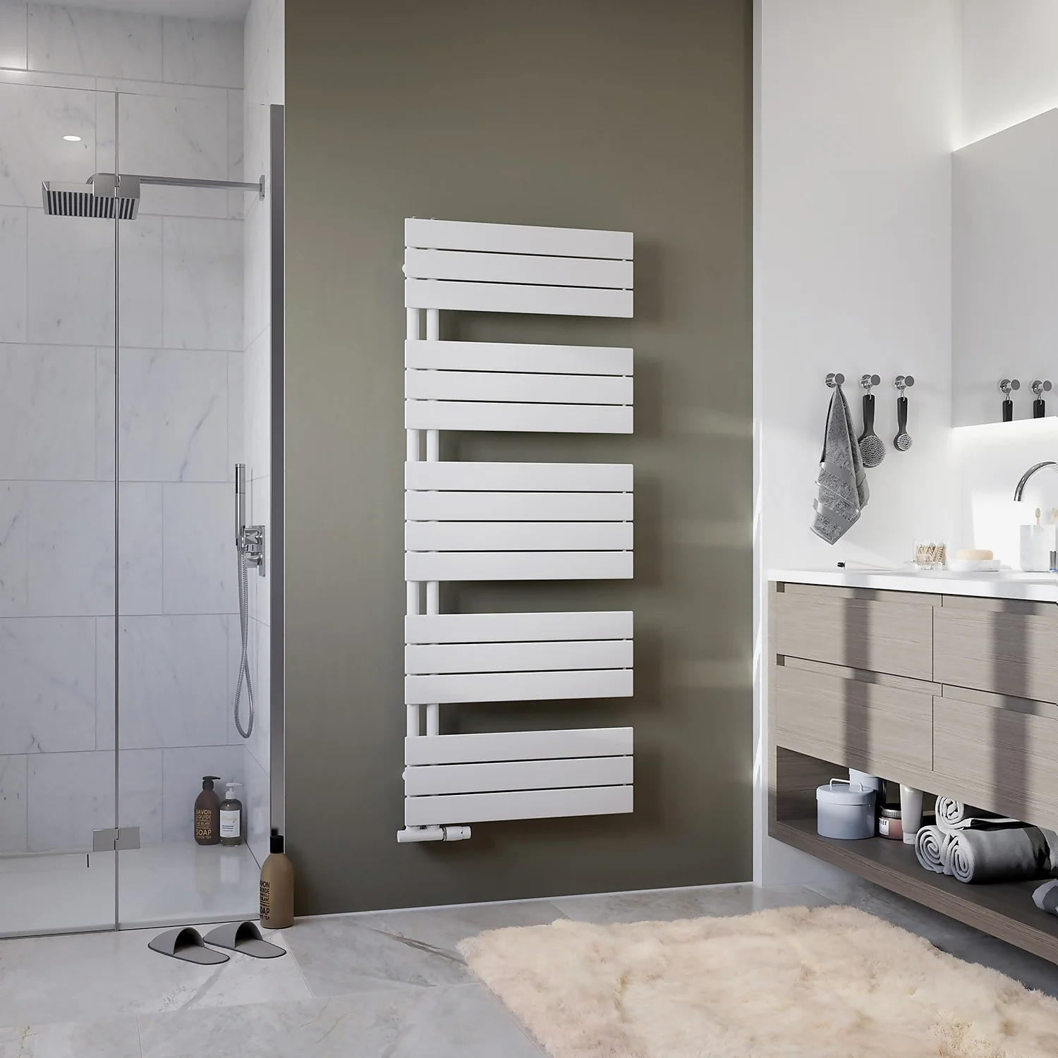 - Stylish towel radiator with a modern panel design