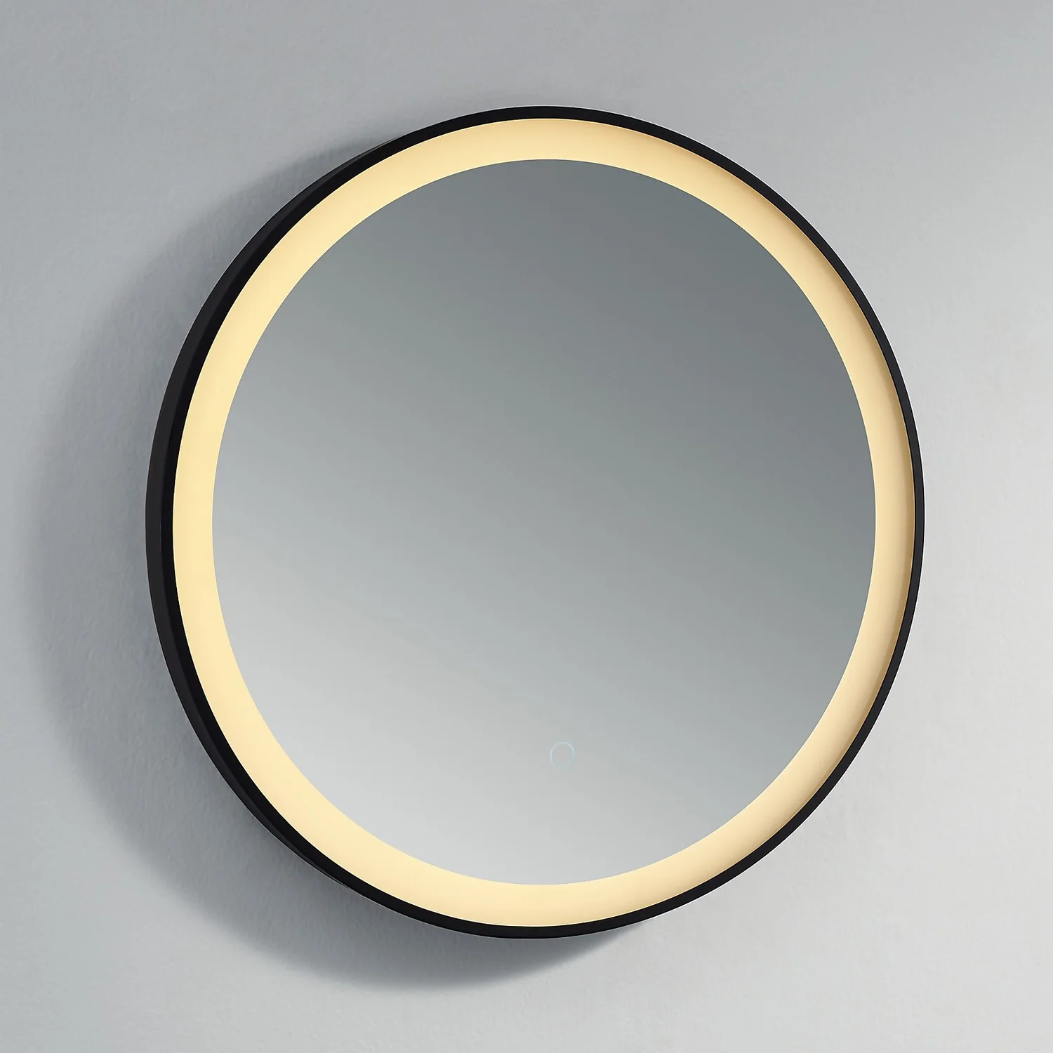 The Tetbury illuminated LED mirror has a contemporary design neatly encapsulated within a modern circular brushed black frame.