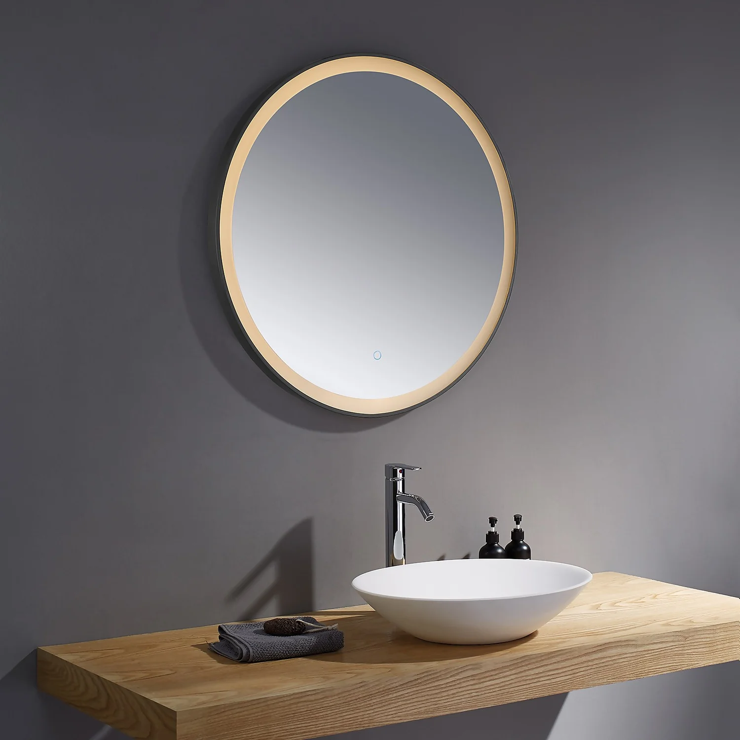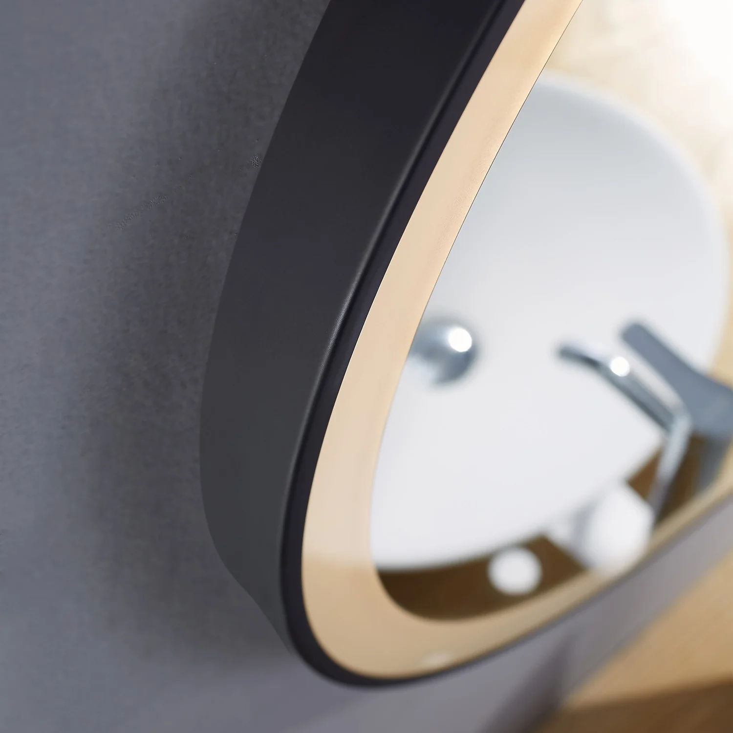 The Tetbury illuminated LED mirror has a contemporary design, neatly encapsulated within a modern circular brushed black frame.