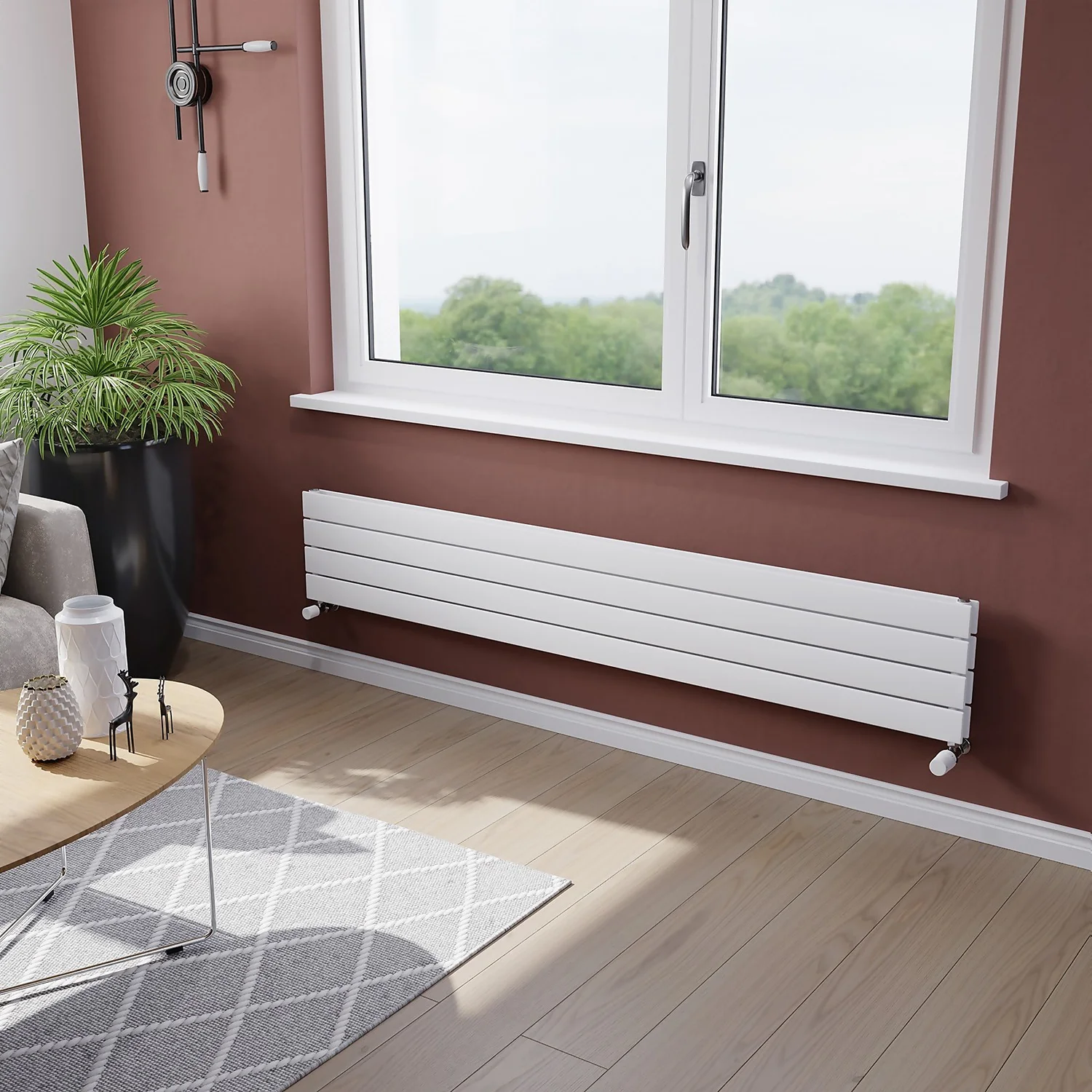 - Stylish horizontal designer radiator with a modern panel design