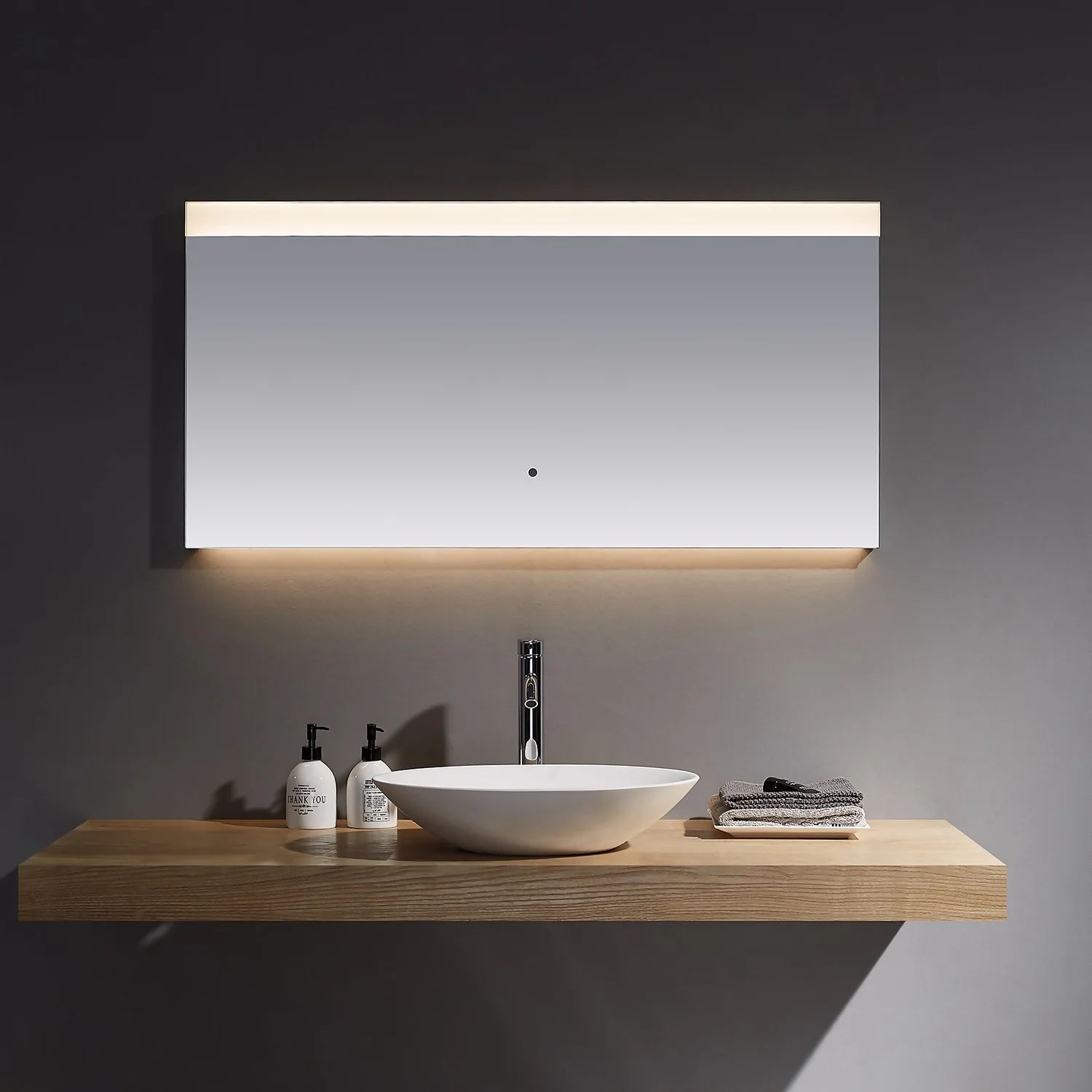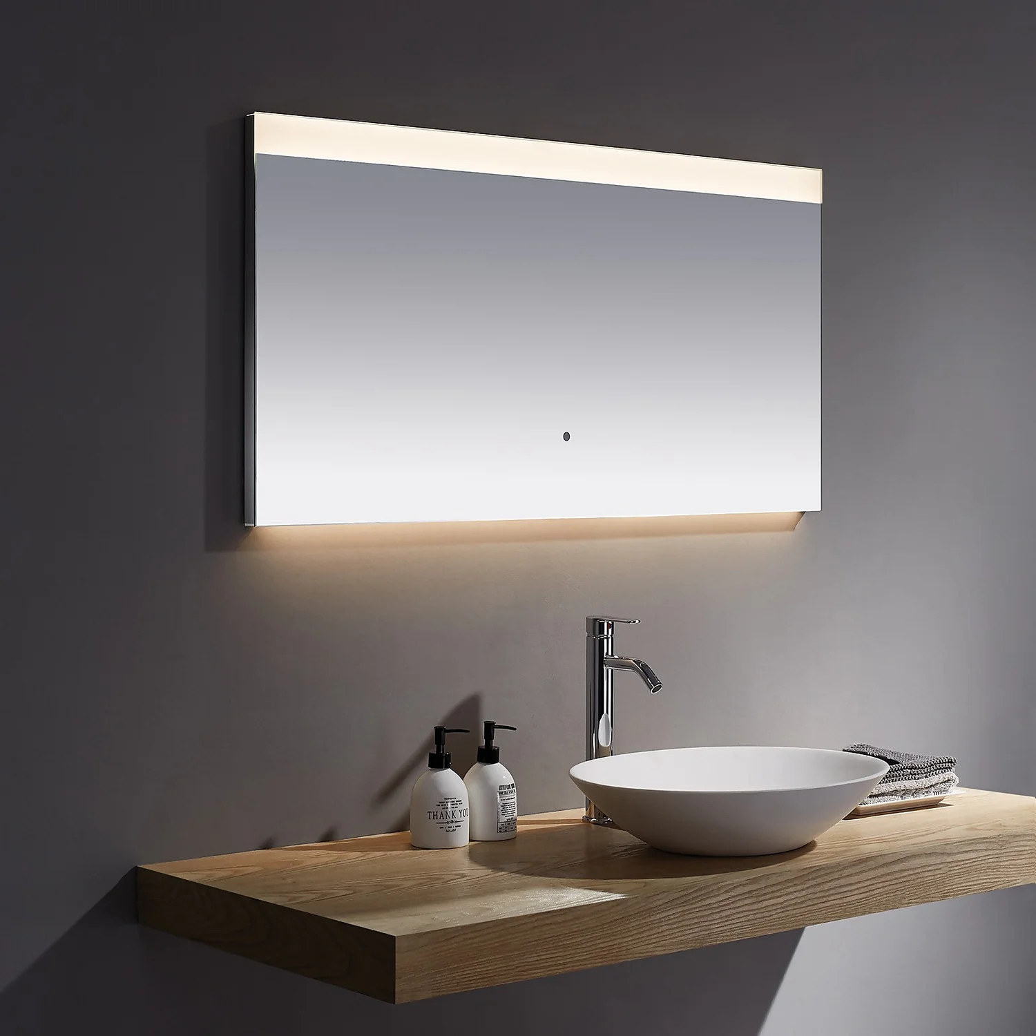 The Tresham Mirror with its ambience and clarity, is infrared controlled with a fully-dimmable top light bar and a soft glow to the basin below.