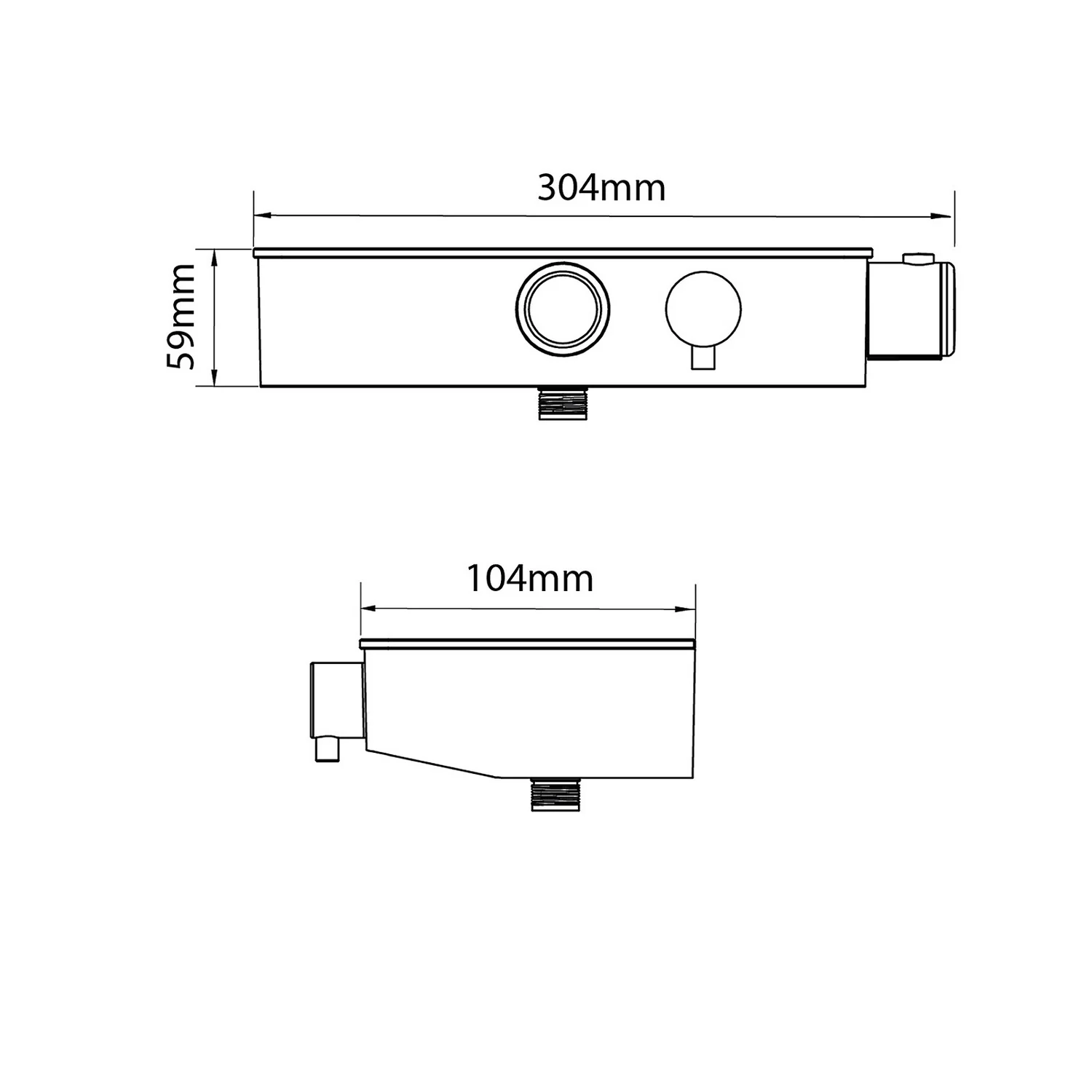 Contemporary chrome finish bar diverter mixer shower, featuring a push button to make switching between the single spray pattern shower handset and fixed (rainfall) shower head easy whilst showering. Designed with a stylish shelf, useful for placing a shampoo bottle.