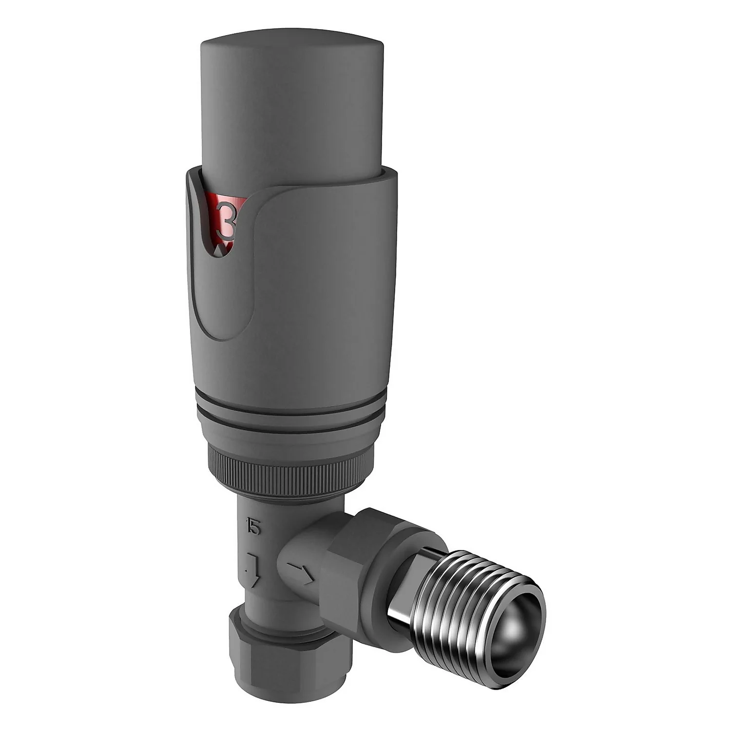 VURTU12 Angled Thermostatic Radiator Valve & Lockshield In Anthracite – Pair