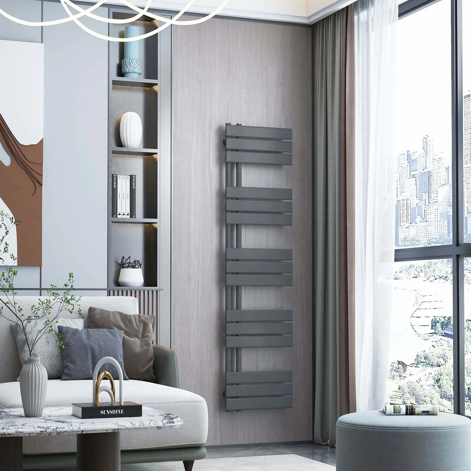 VURTU3 Vertical Single Panel Radiator 1600mm X 600mm – Anthracite